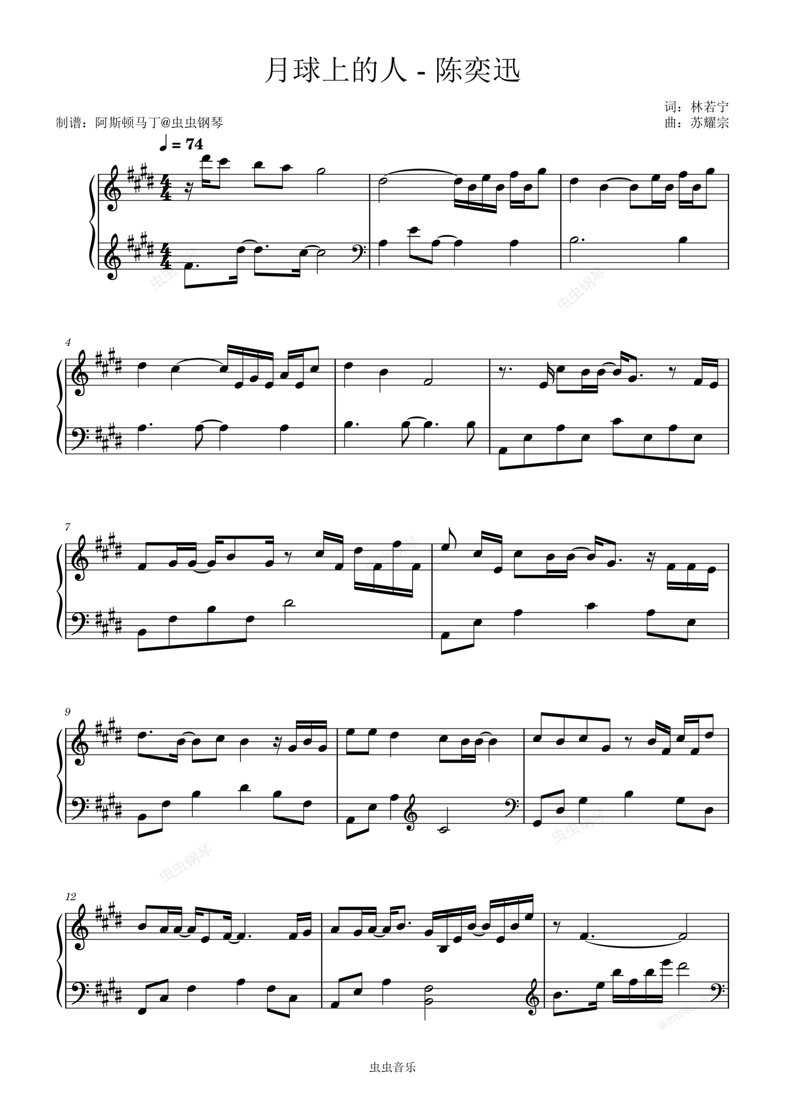 钢琴谱:月球上的人 - 陈奕迅 (Eason Chan)【独奏】