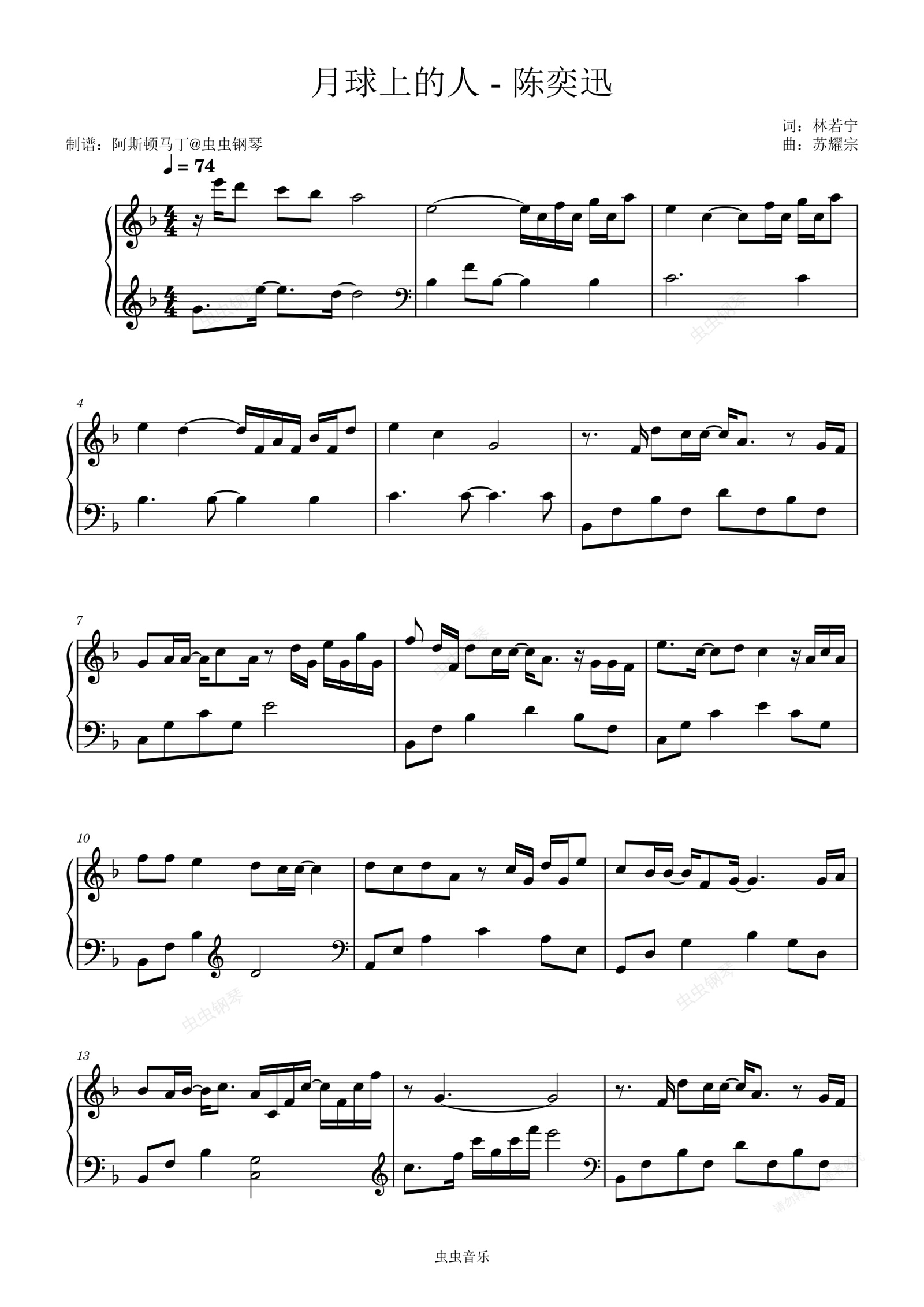 钢琴谱:月球上的人 - 陈奕迅 (Eason Chan)【独奏】