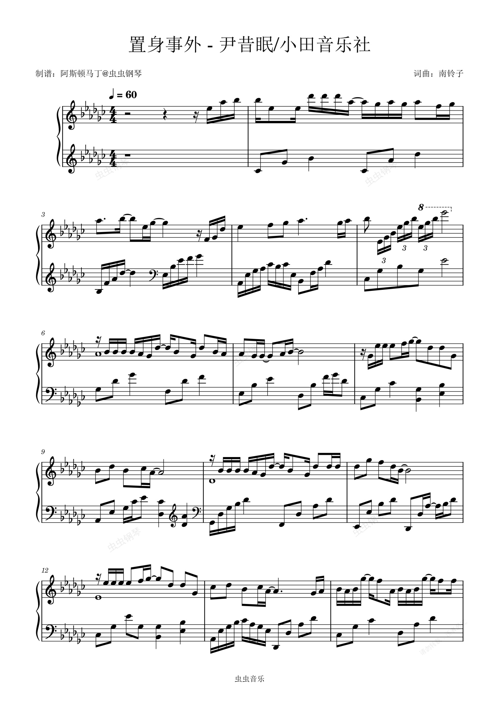 钢琴谱:置身事外 - 尹昔眠/小田音乐社【独奏】