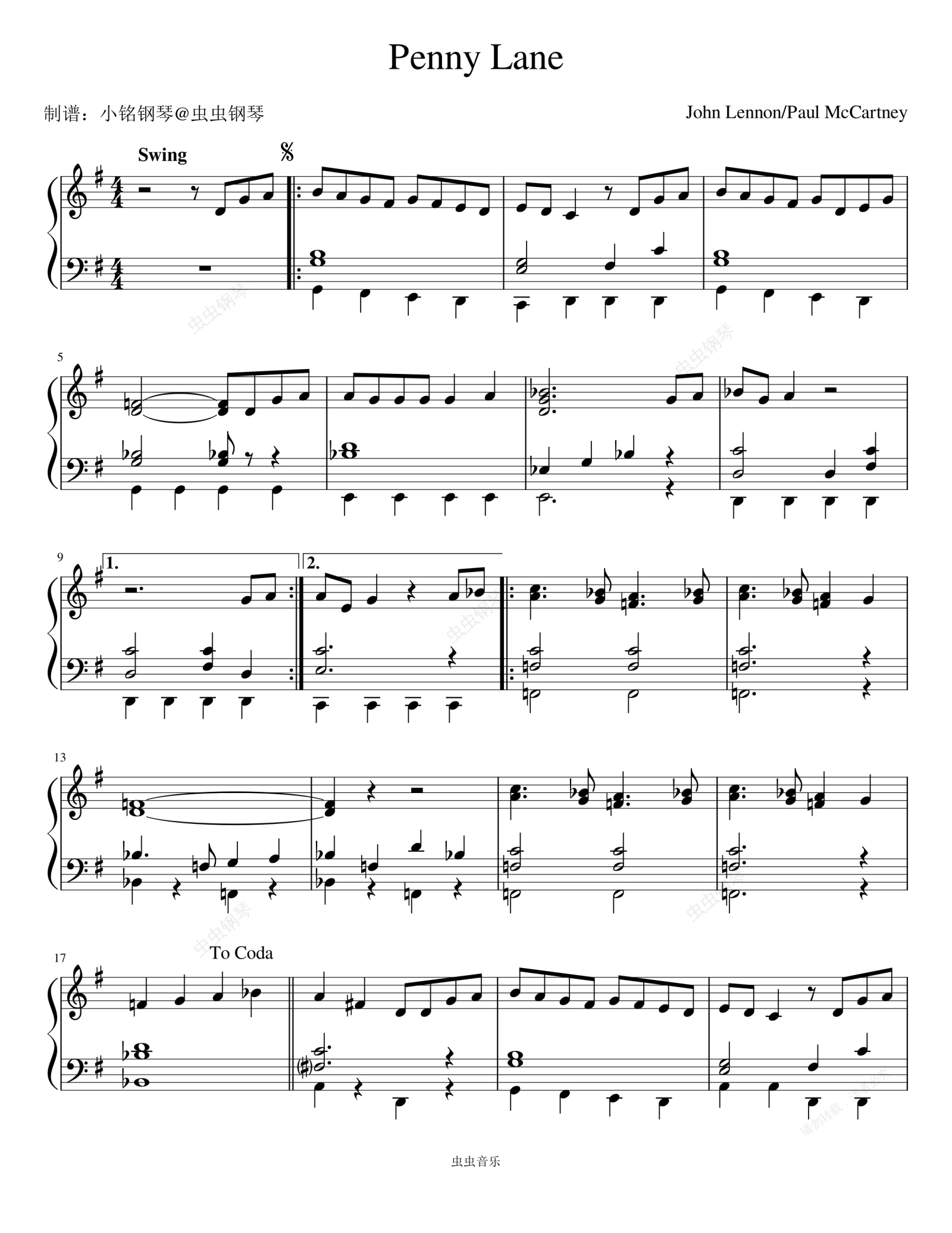 钢琴谱:Penny Lane (Remastered 2009) - The Beatles (披头士)