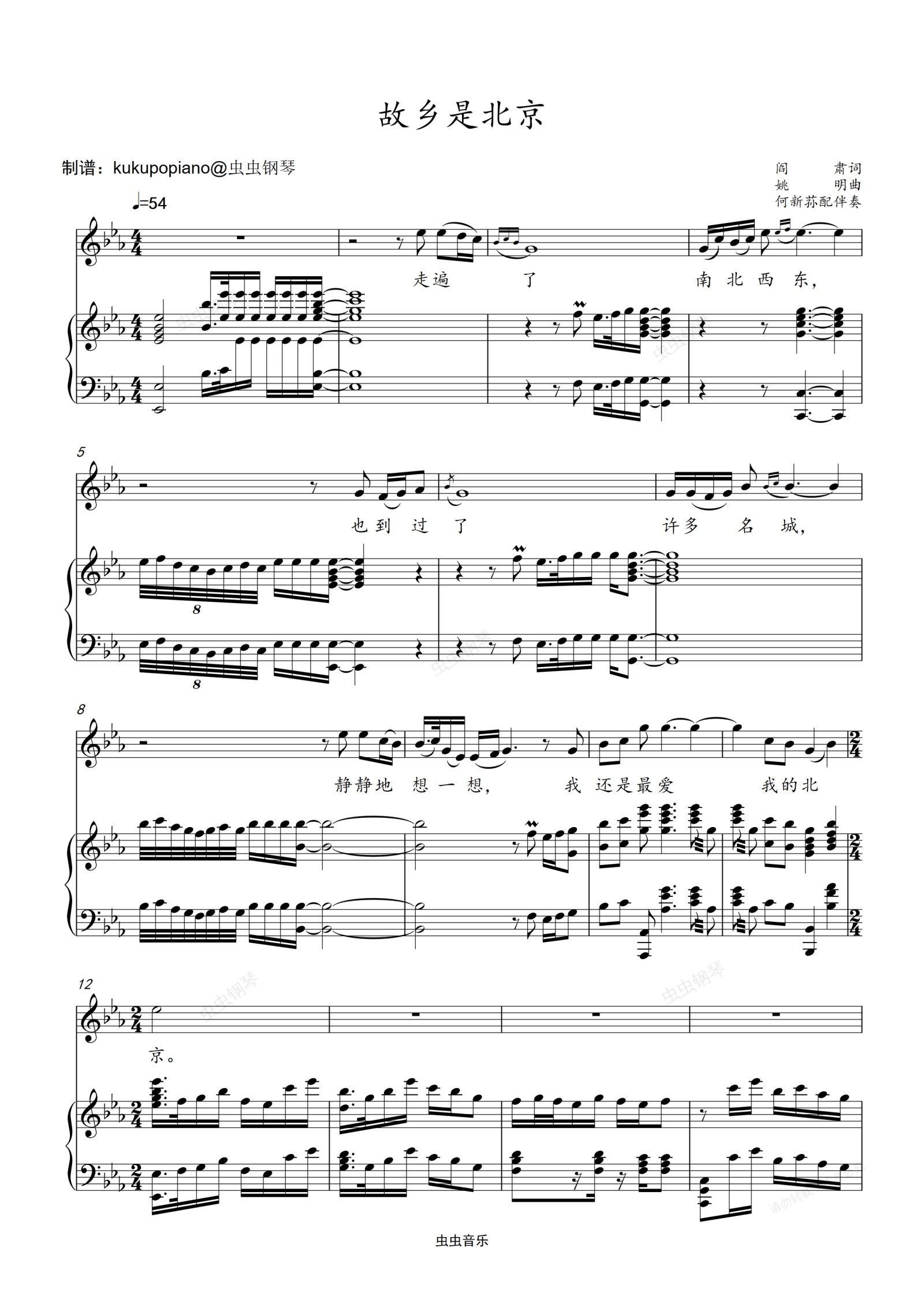 钢琴谱:故乡是北京