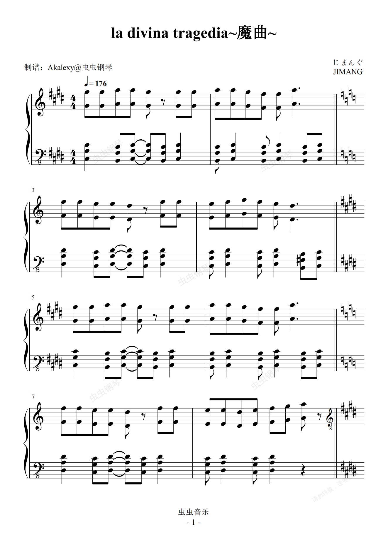 钢琴谱:【海猫鸣泣之时】la divina tragedia~魔曲~