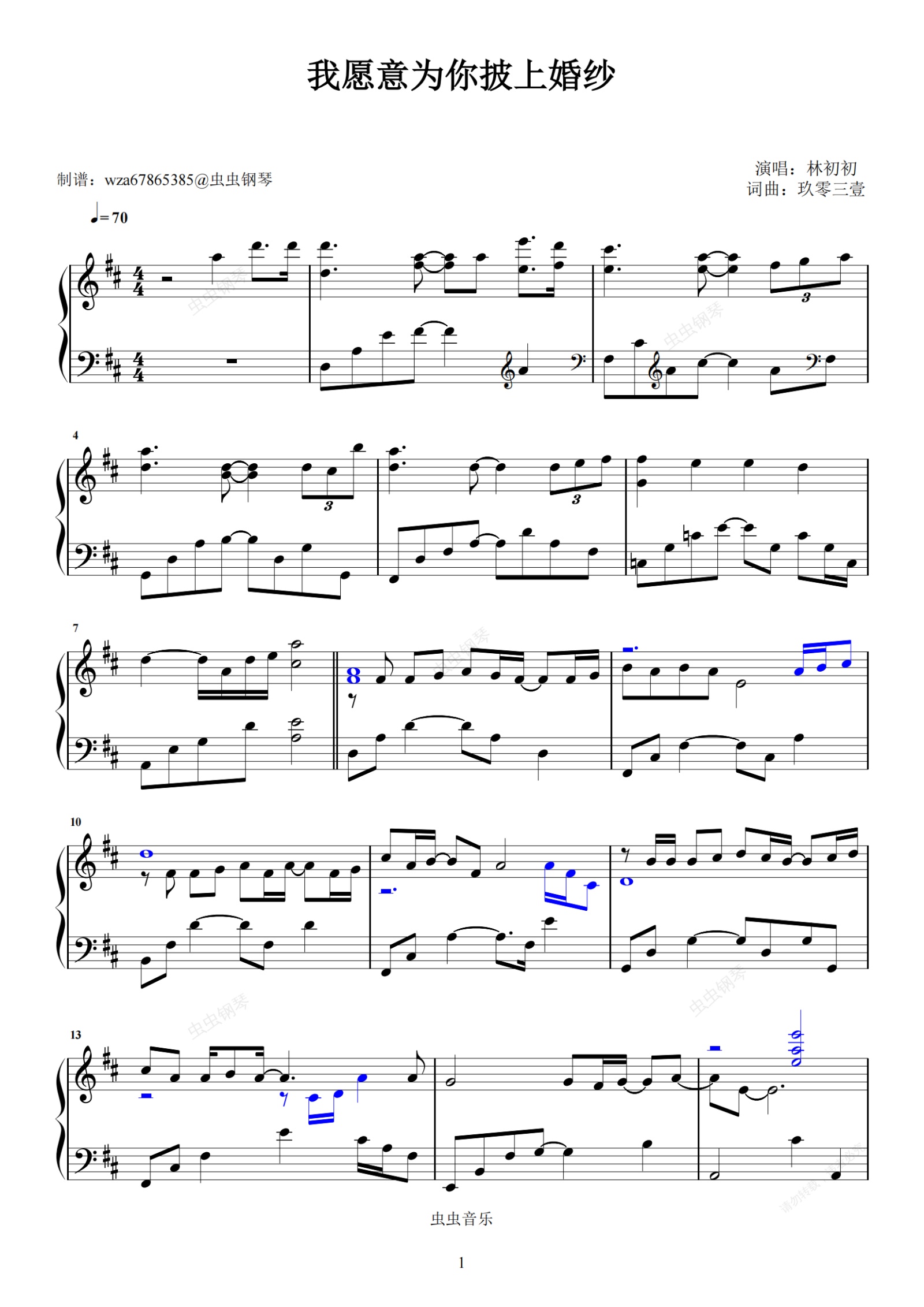钢琴谱:我愿意为你披上婚纱