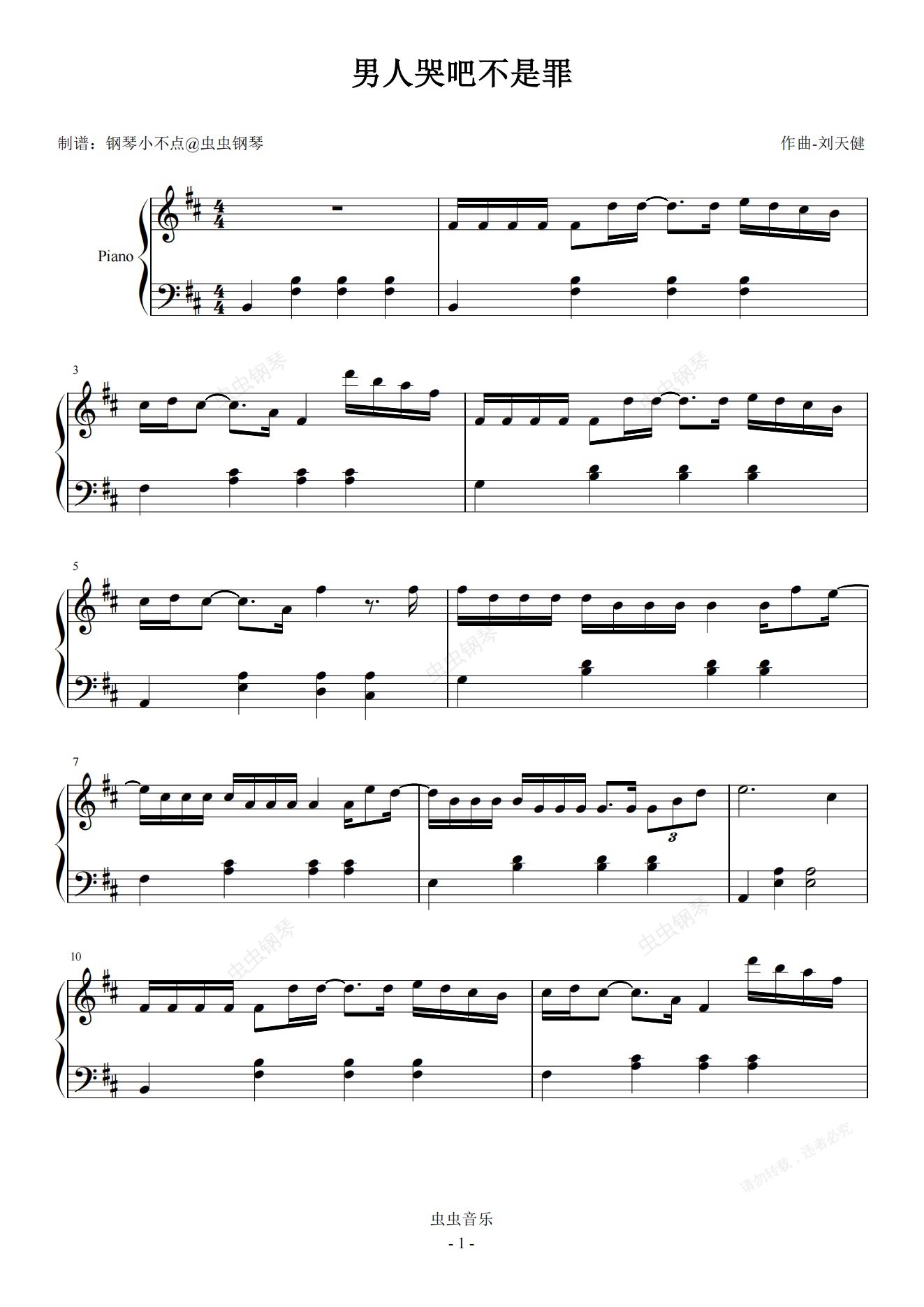 钢琴谱:男人哭吧不是罪 【经典怀旧】