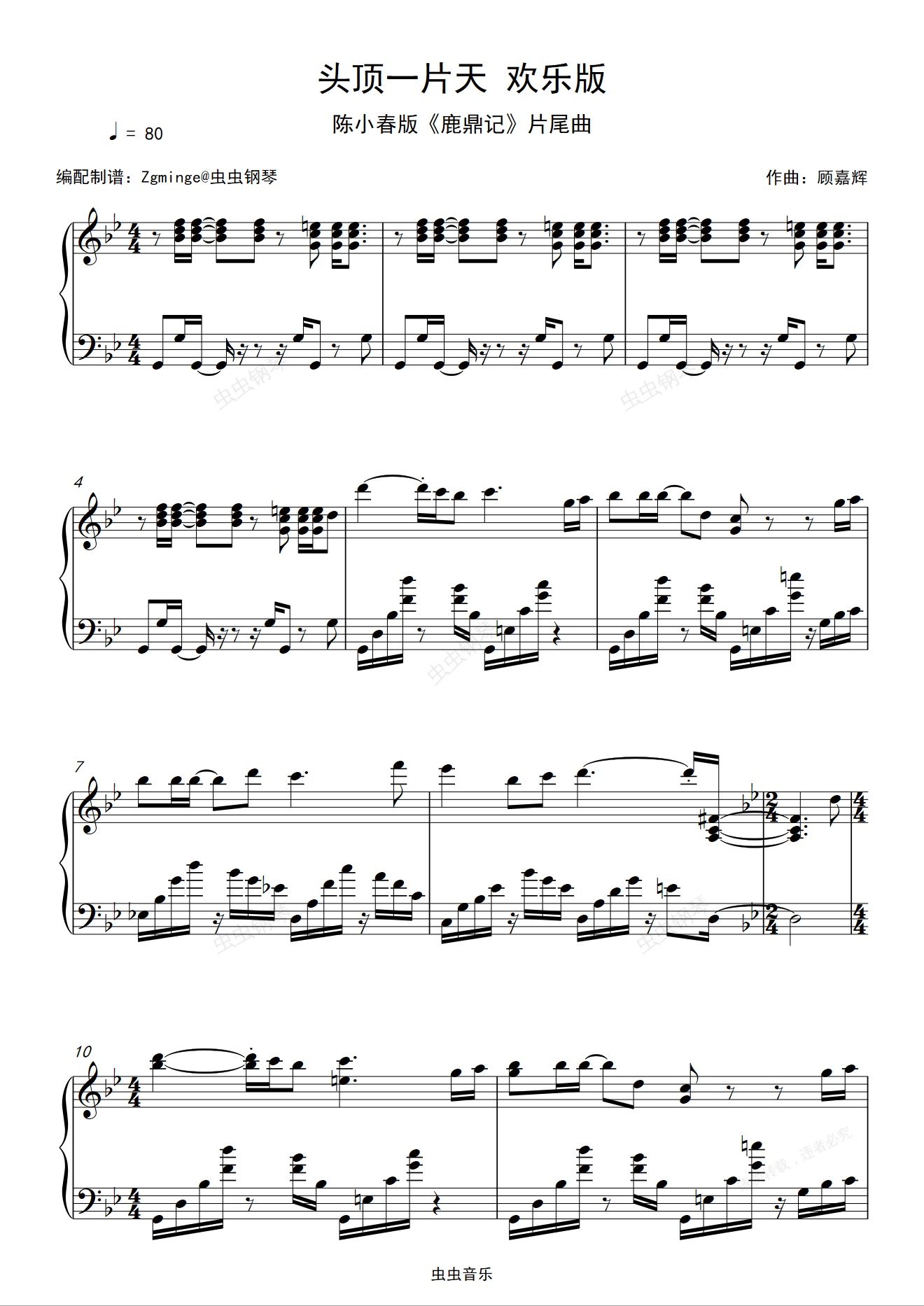 钢琴谱:头顶一片天 欢乐版