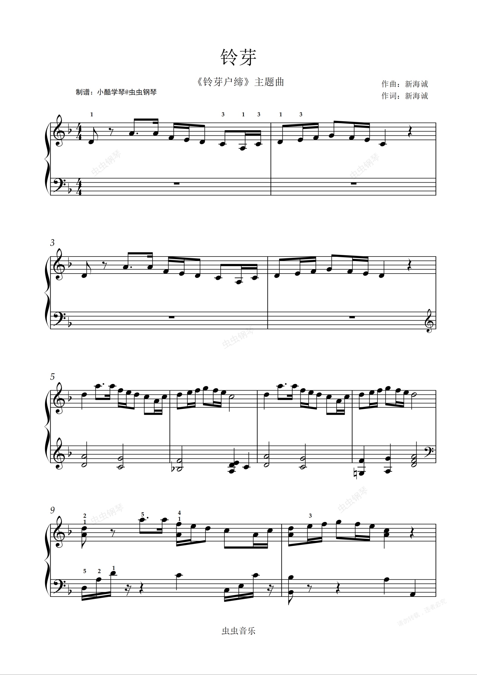 钢琴谱:铃芽户缔主题曲《铃芽》钢琴超还原改编版——主页有演示视频