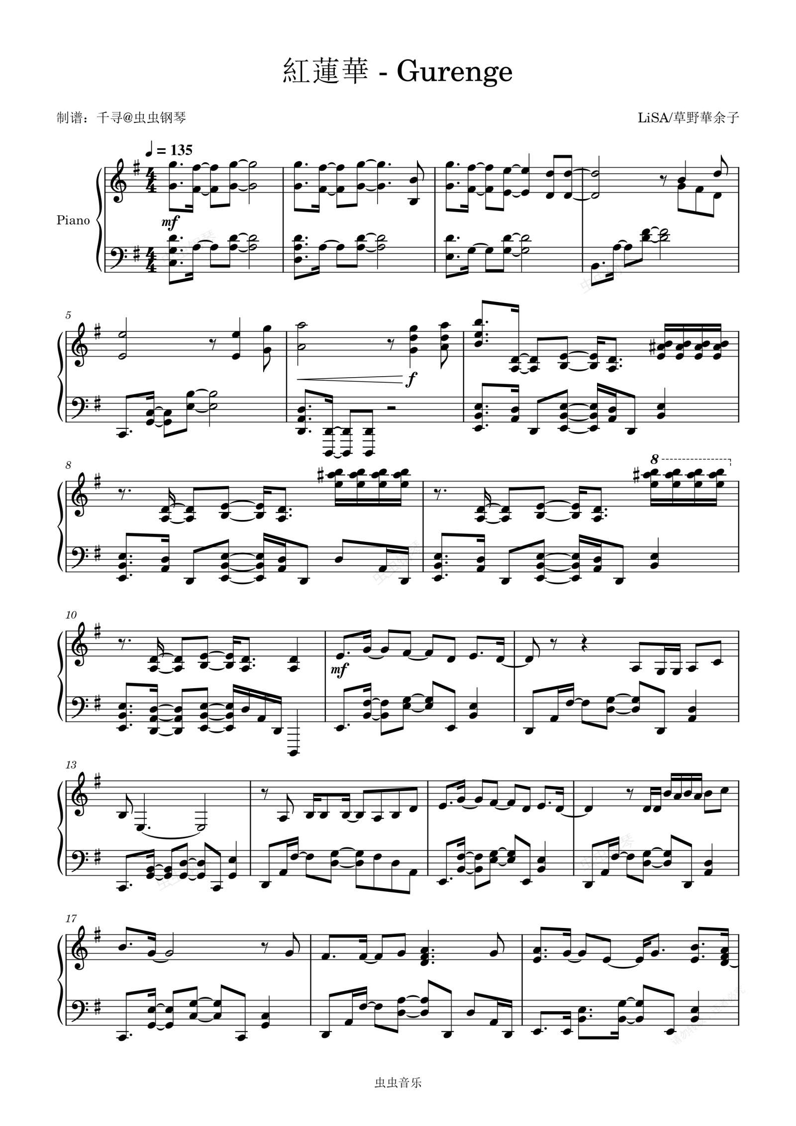 钢琴谱:爆燃红莲华(鬼灭之刃OP) - Gurenge