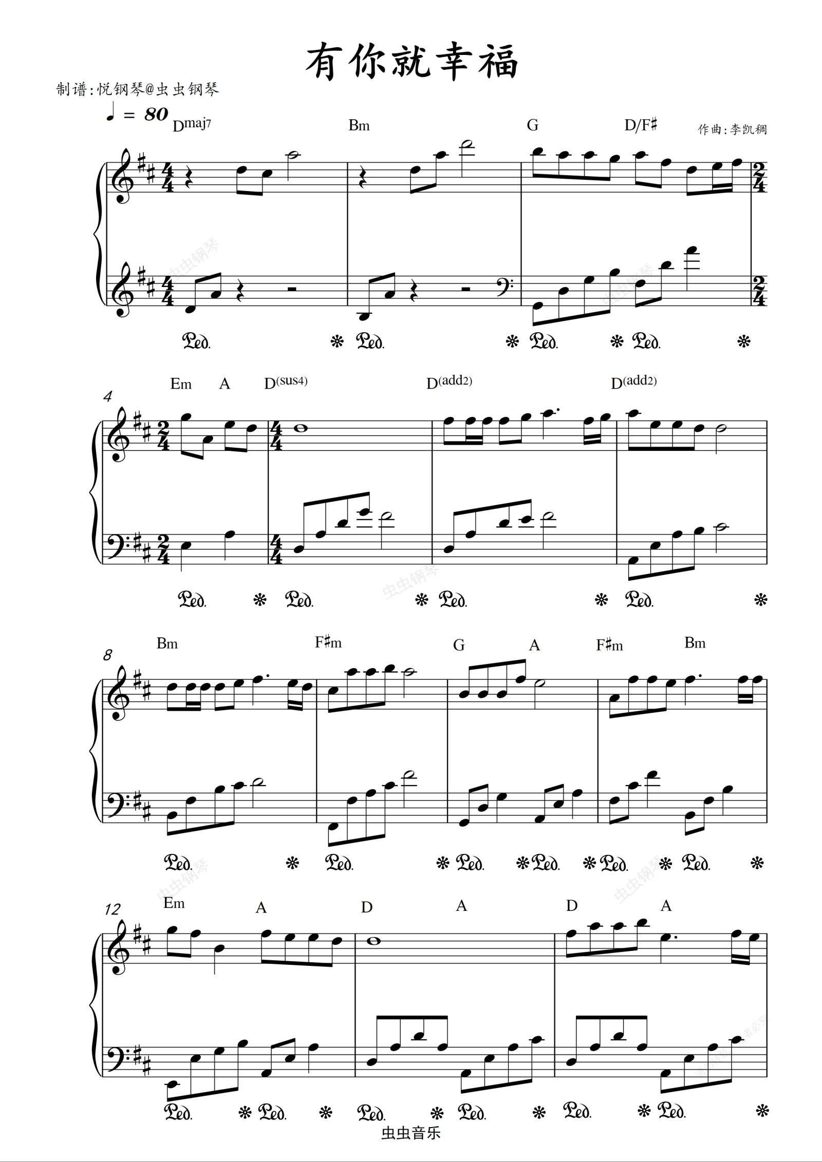 钢琴谱:有你就幸福(原调版)李昕融、叶泳沺