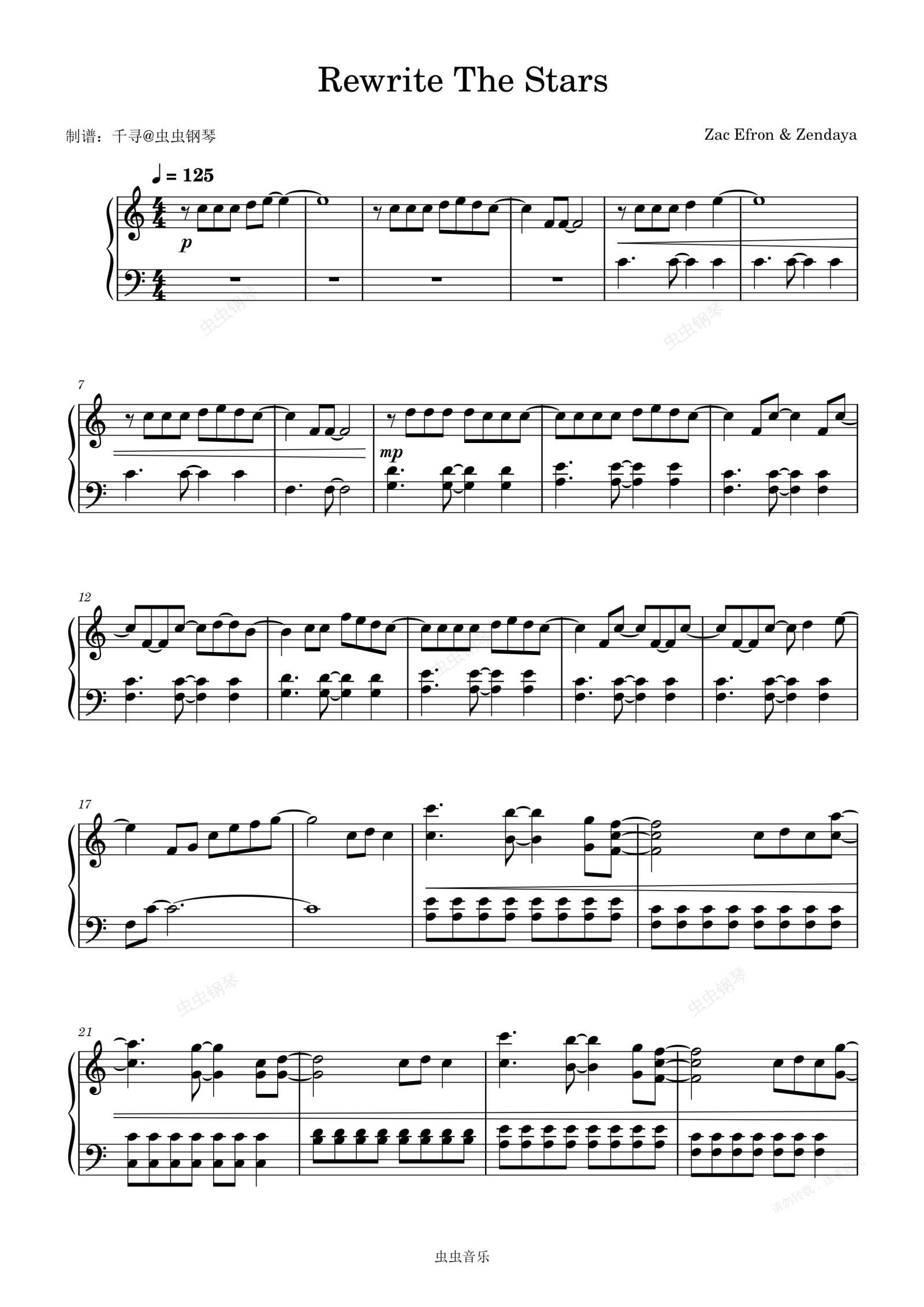 钢琴谱:Rewrite The Stars - Zac Efron (扎克·埃夫隆)/Zendaya (赞达亚)