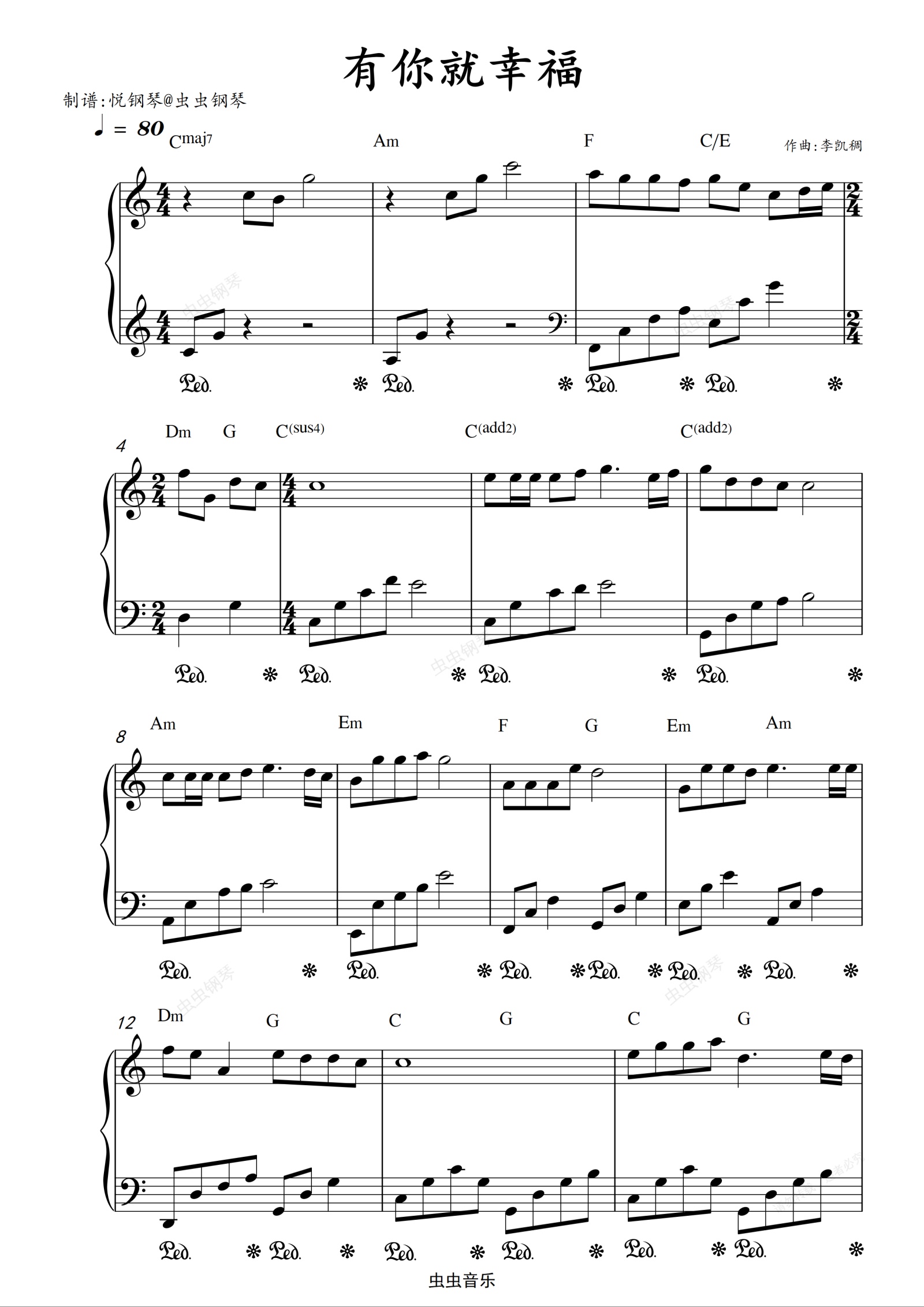 钢琴谱:有你就幸福 李昕融、叶泳沺