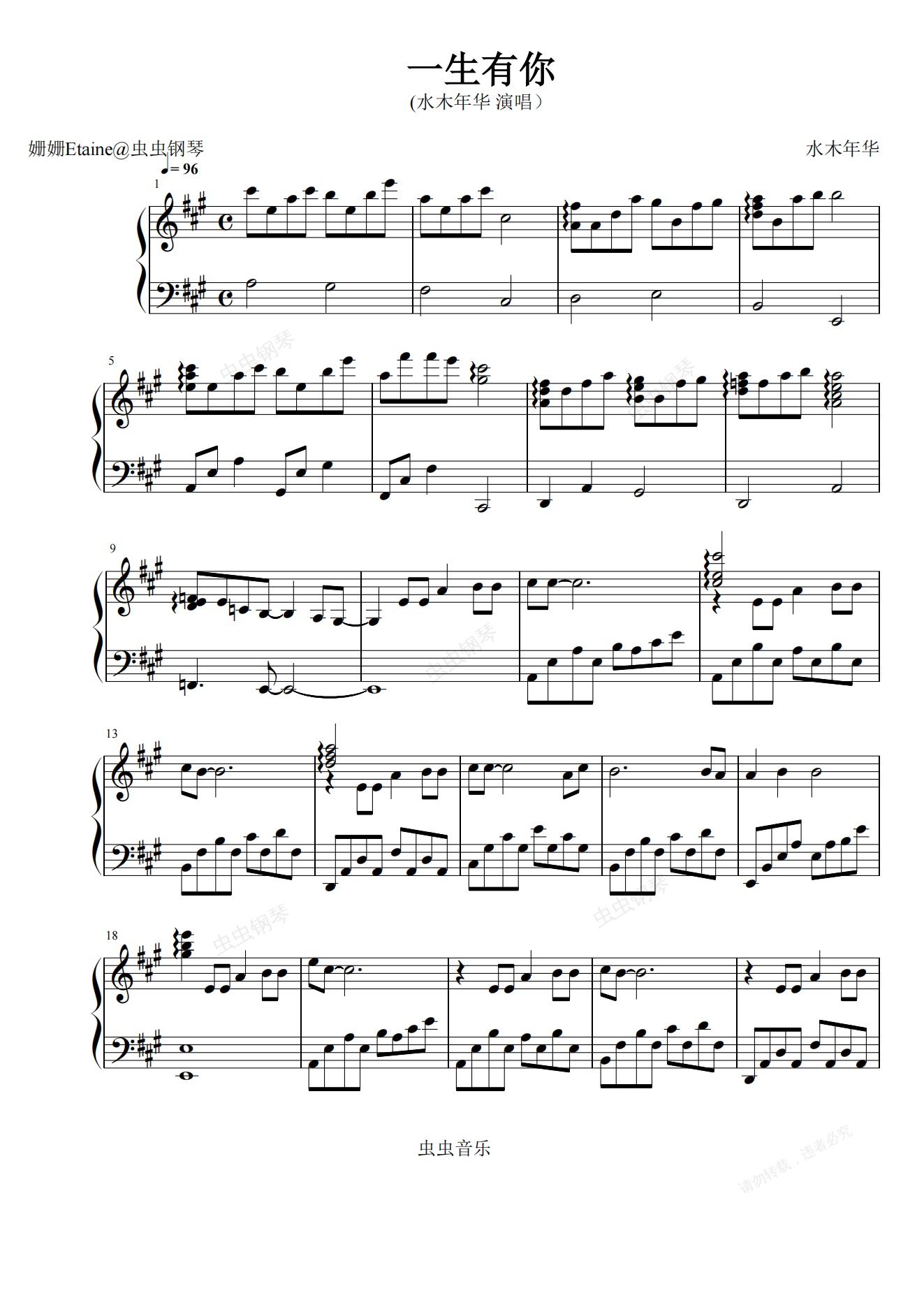 钢琴谱:一生有你(水木年华 演唱)