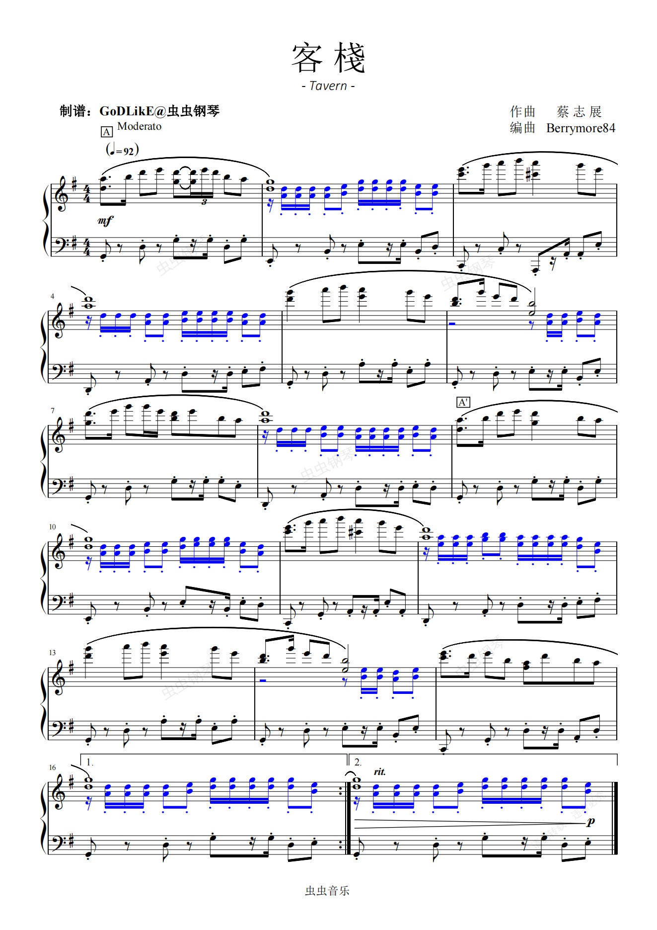 钢琴谱:《金庸群侠传》- 客栈 -