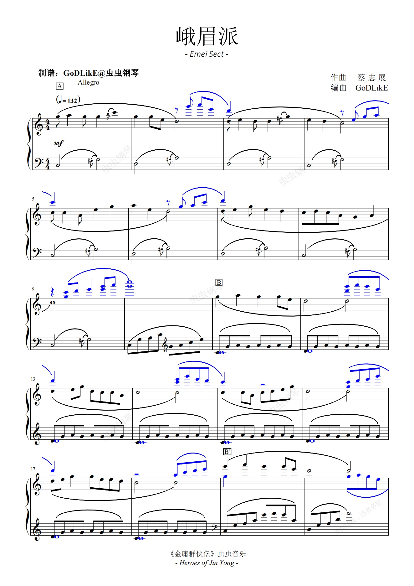钢琴谱:《金庸群侠传》- 峨眉派 -