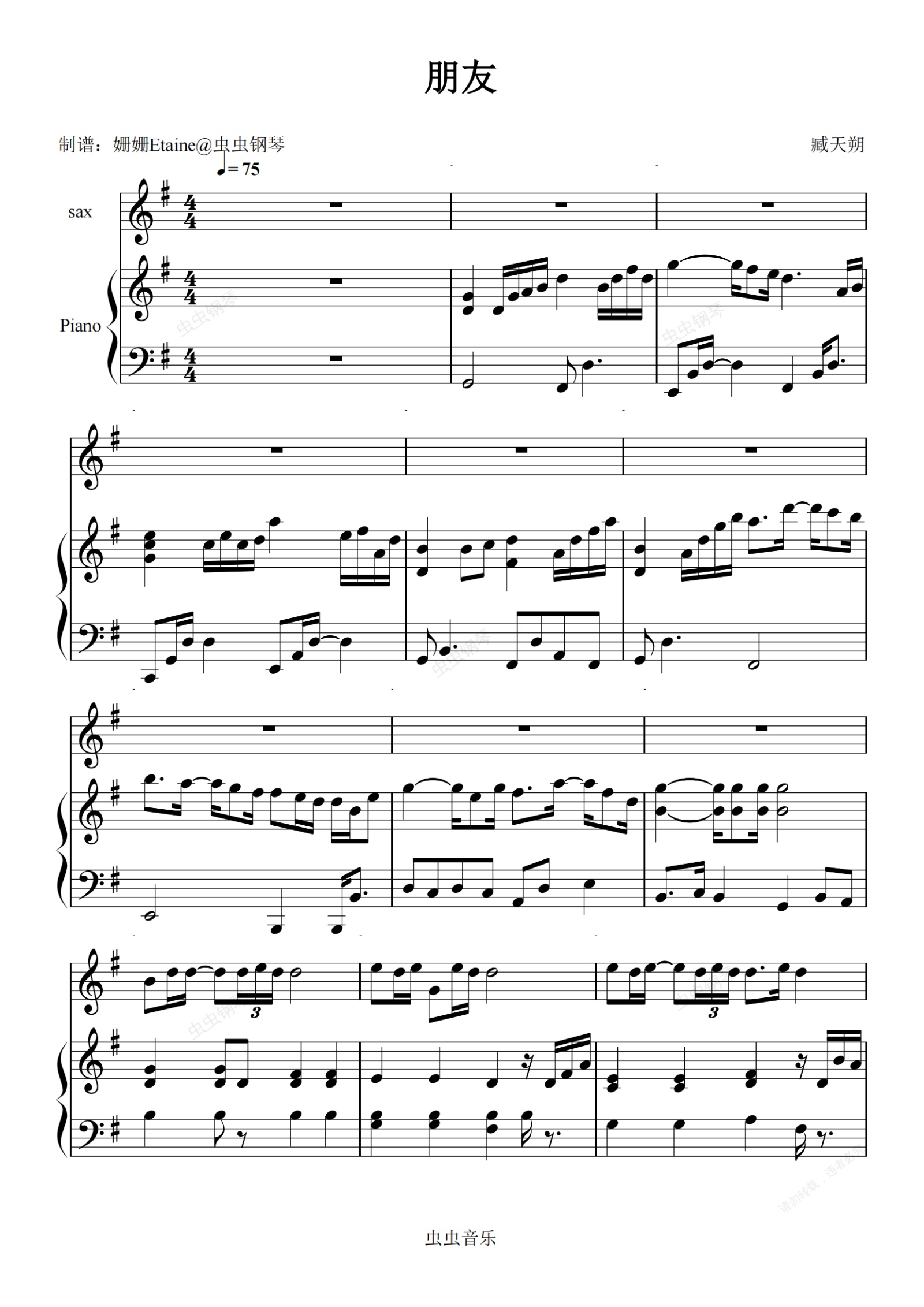 钢琴谱:臧天朔《朋友》 钢琴谱