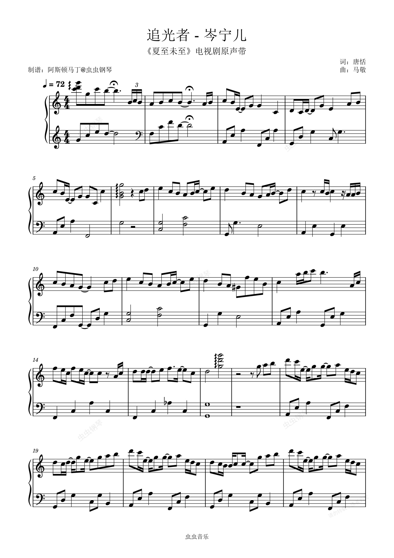 钢琴谱:追光者 - 岑宁儿(《夏至未至》电视剧原声带)【独奏】