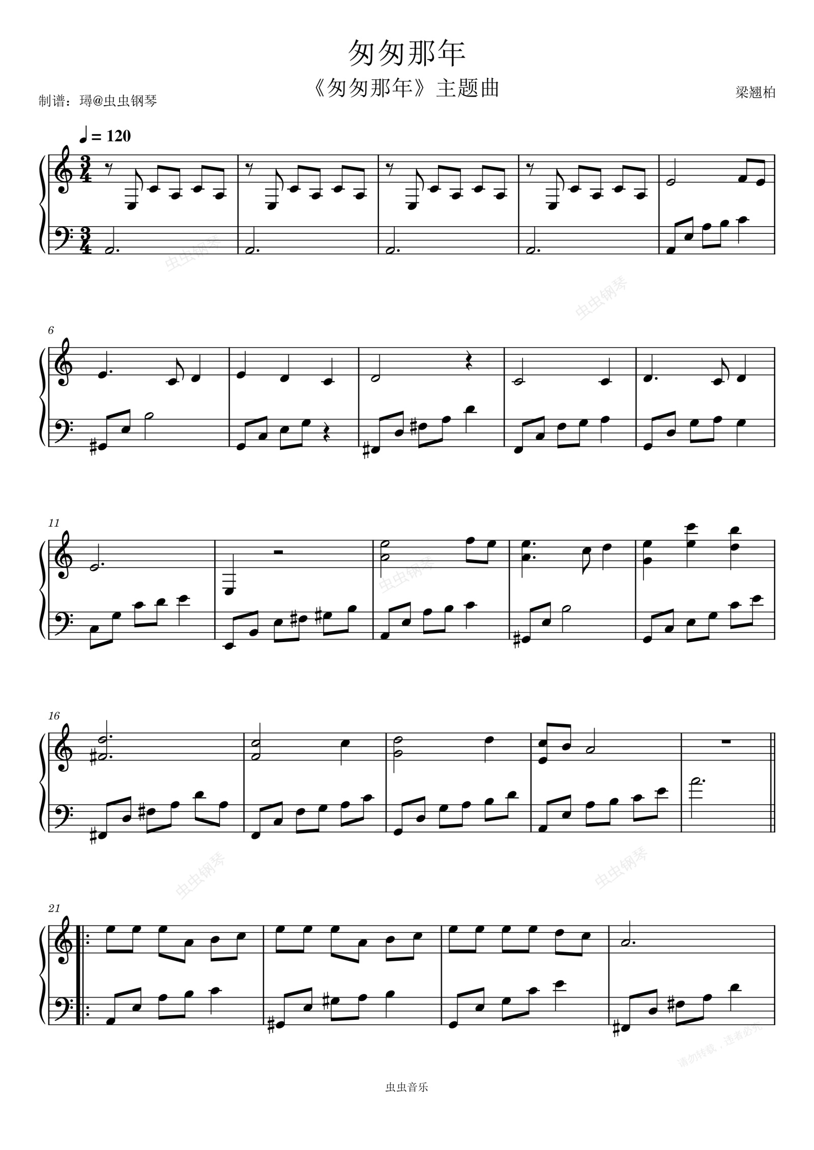 钢琴谱:匆匆那年