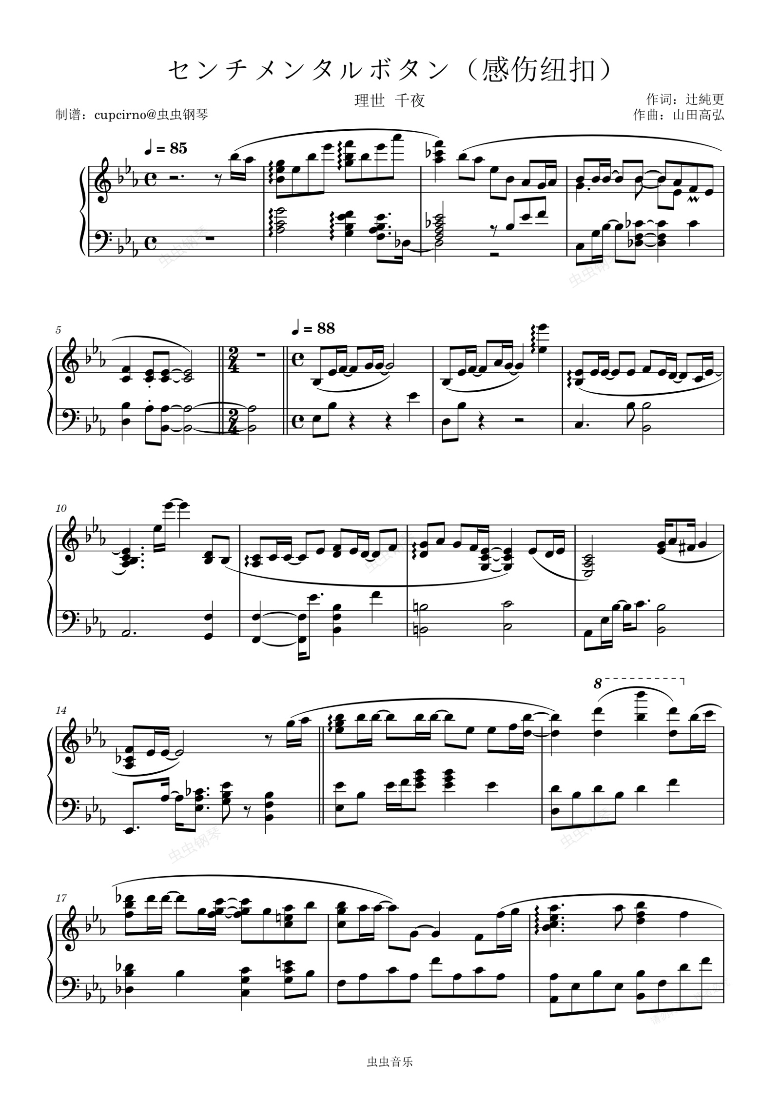 钢琴谱:[点兔]センチメンタルボタン(感伤纽扣)