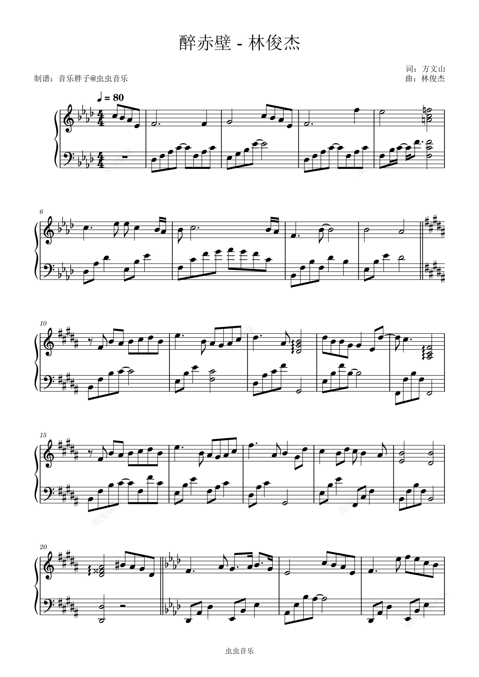 钢琴谱:醉赤壁 - 林俊杰