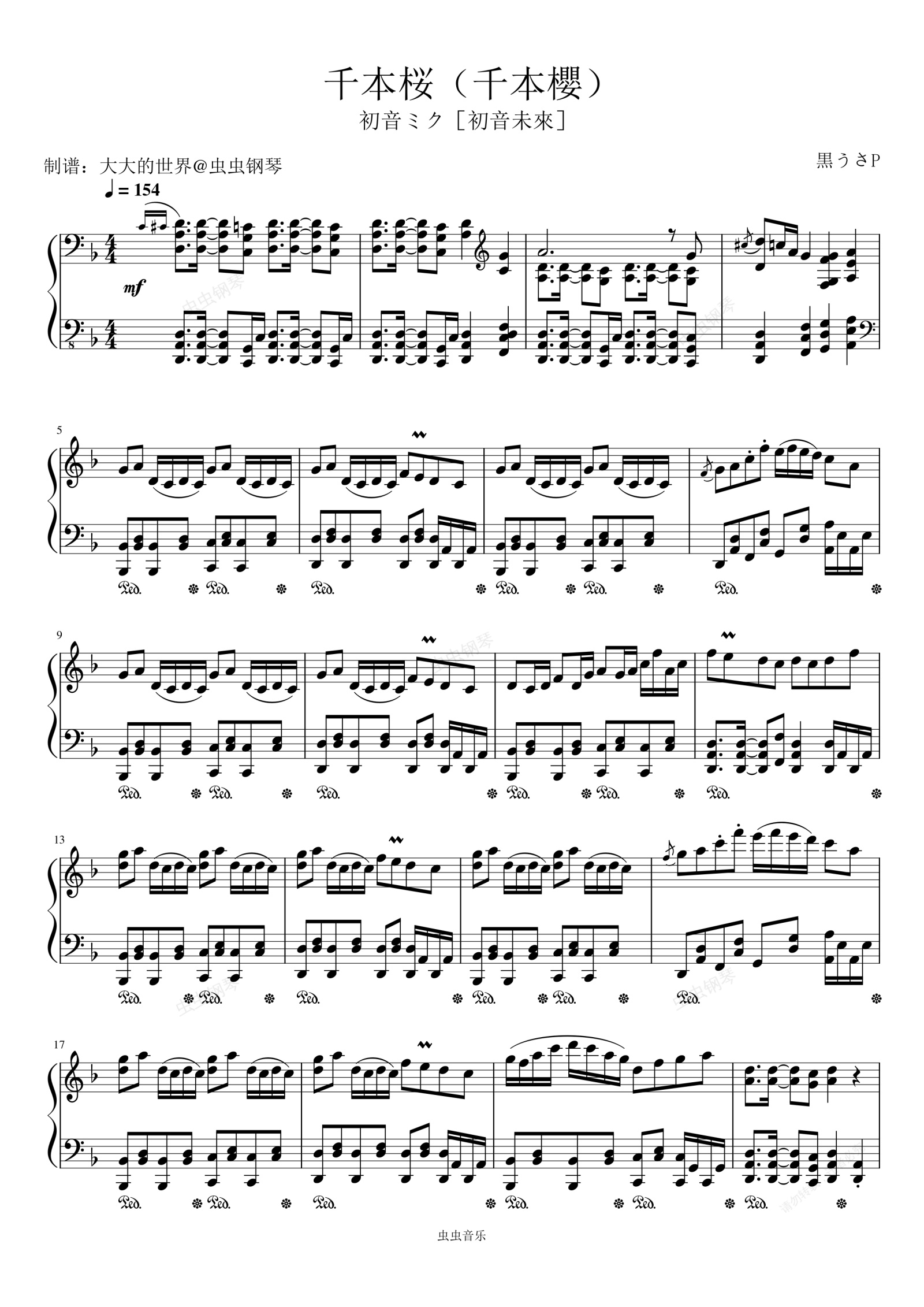 钢琴谱:千本桜 (千本樱) - 初音ミク (初音未来)【超燃版本】