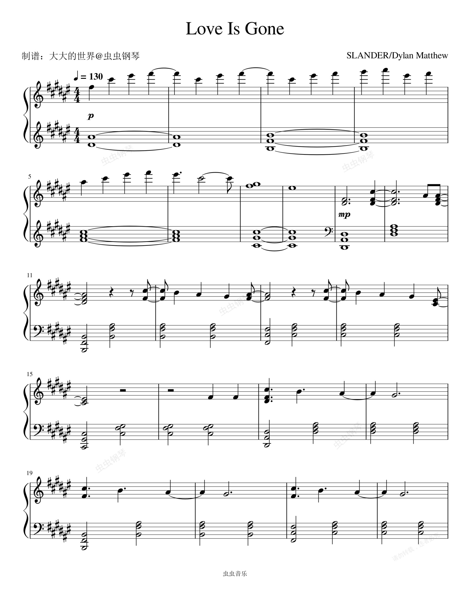 钢琴谱:Love Is Gone (唯美独奏) - SLANDER/Dylan Matthew