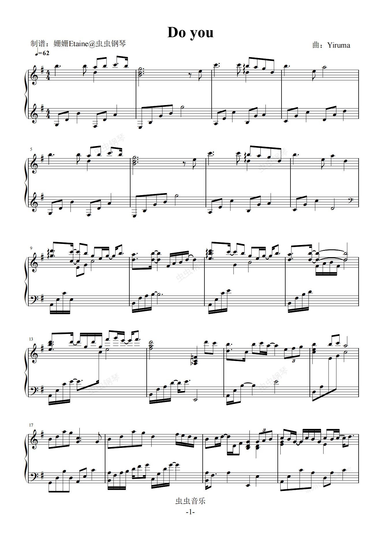 钢琴谱:do you Yiruma 钢琴谱