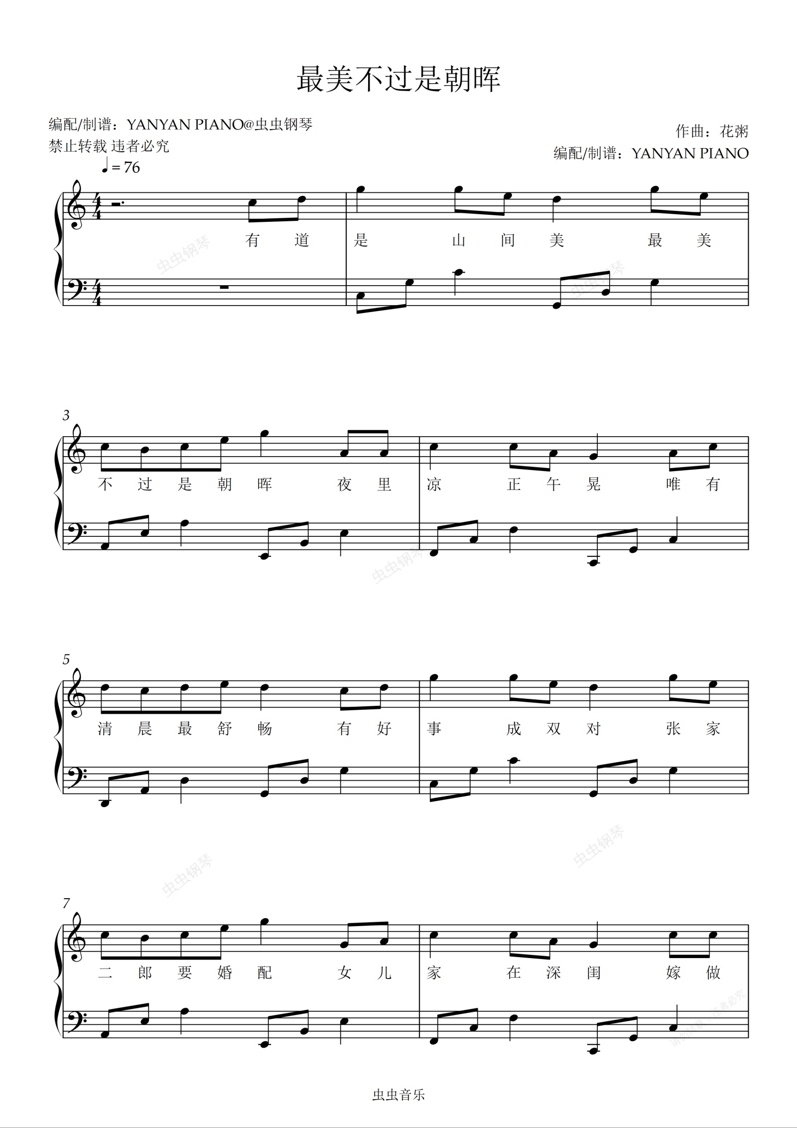 钢琴谱:好听易弹【最美不过是朝晖】花粥