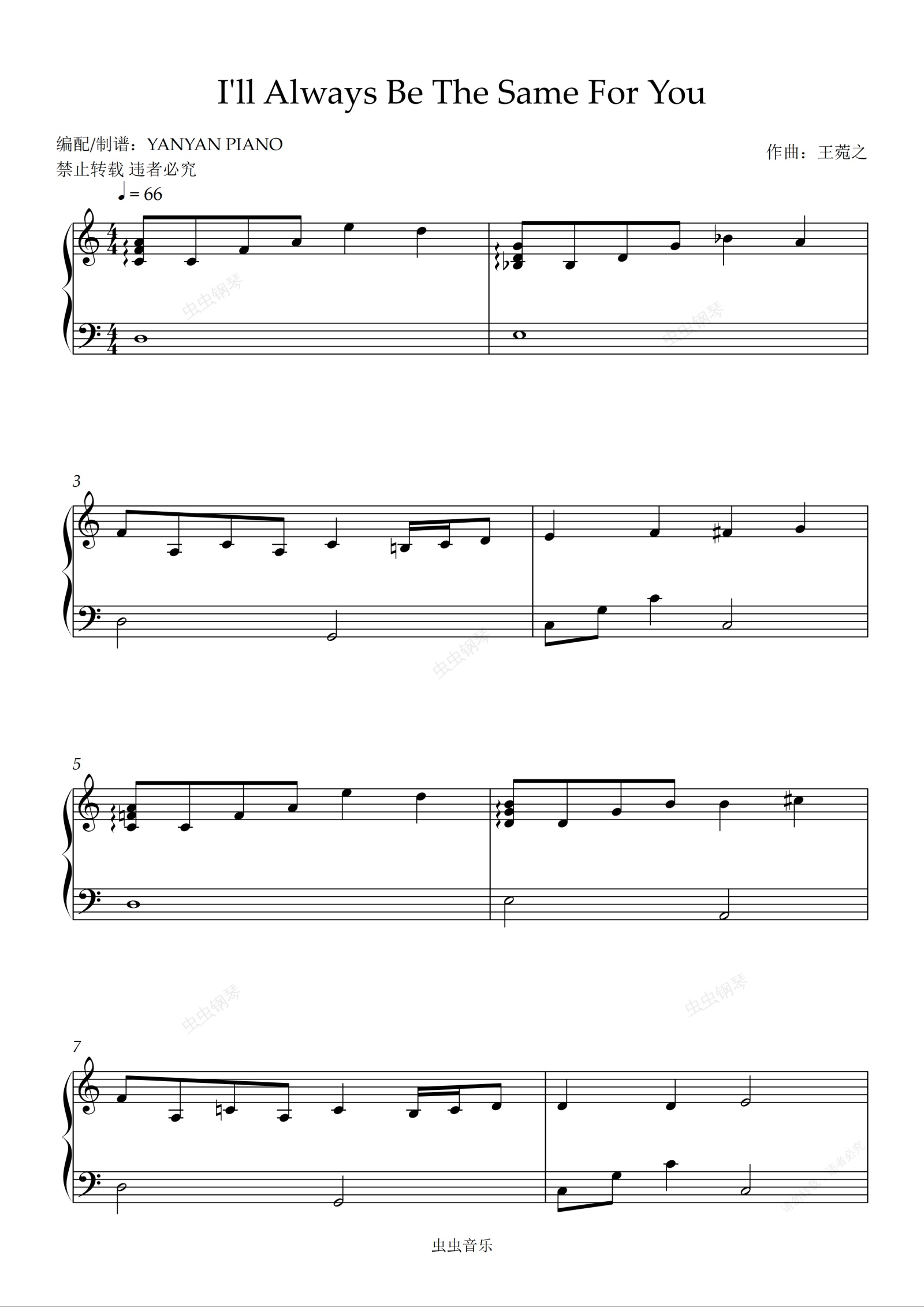 钢琴谱:好听易弹【I'll Always Be The Same For You】于文文