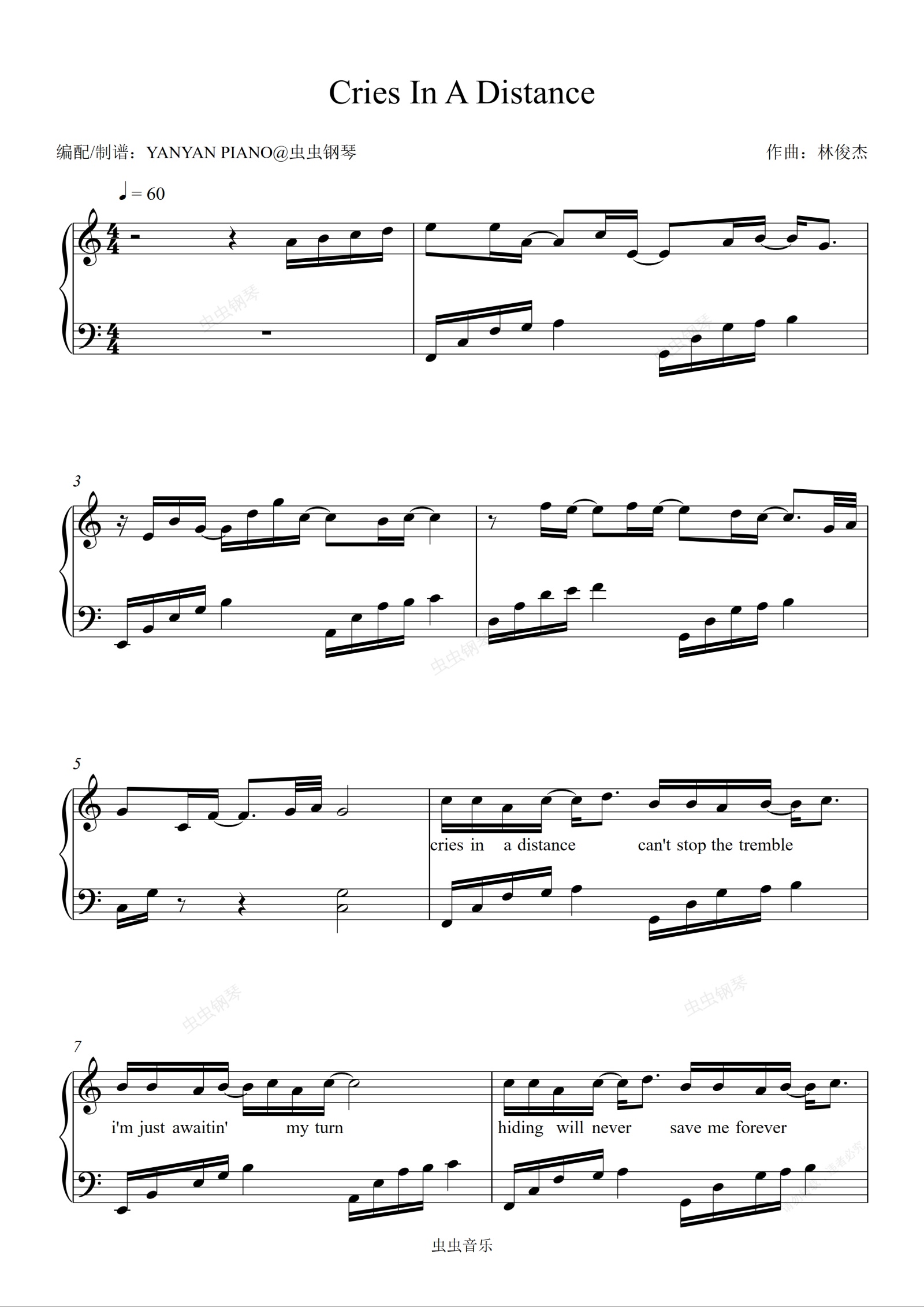 钢琴谱:好听易弹【Cries In A Distance】林俊杰