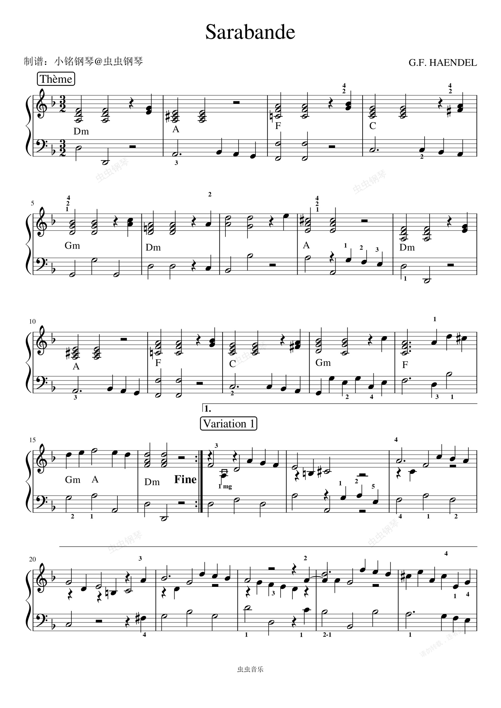 钢琴谱:Sarabande (萨拉班德舞曲)