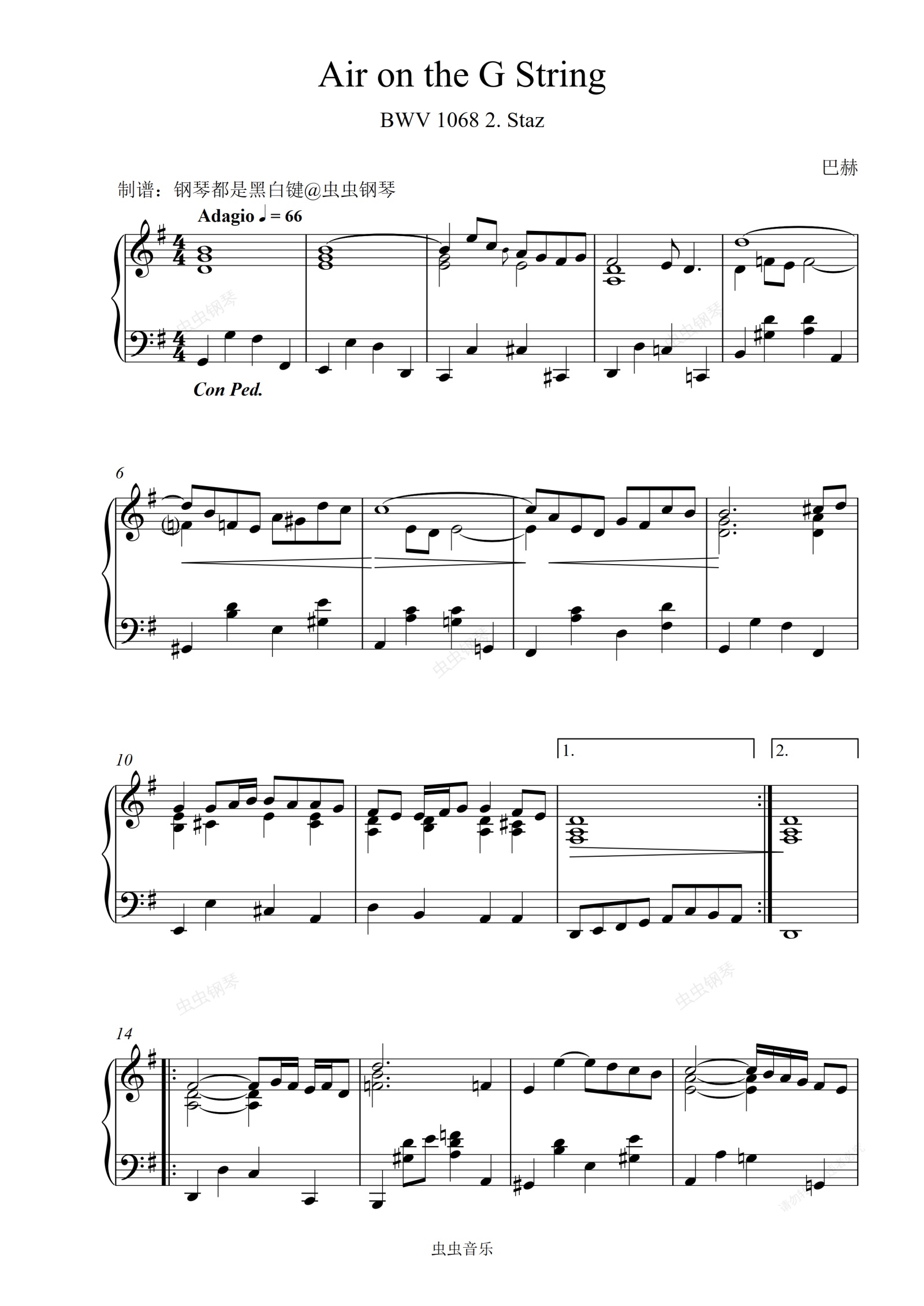 钢琴谱:巴赫 G弦上的咏叹调 -Air on the G String