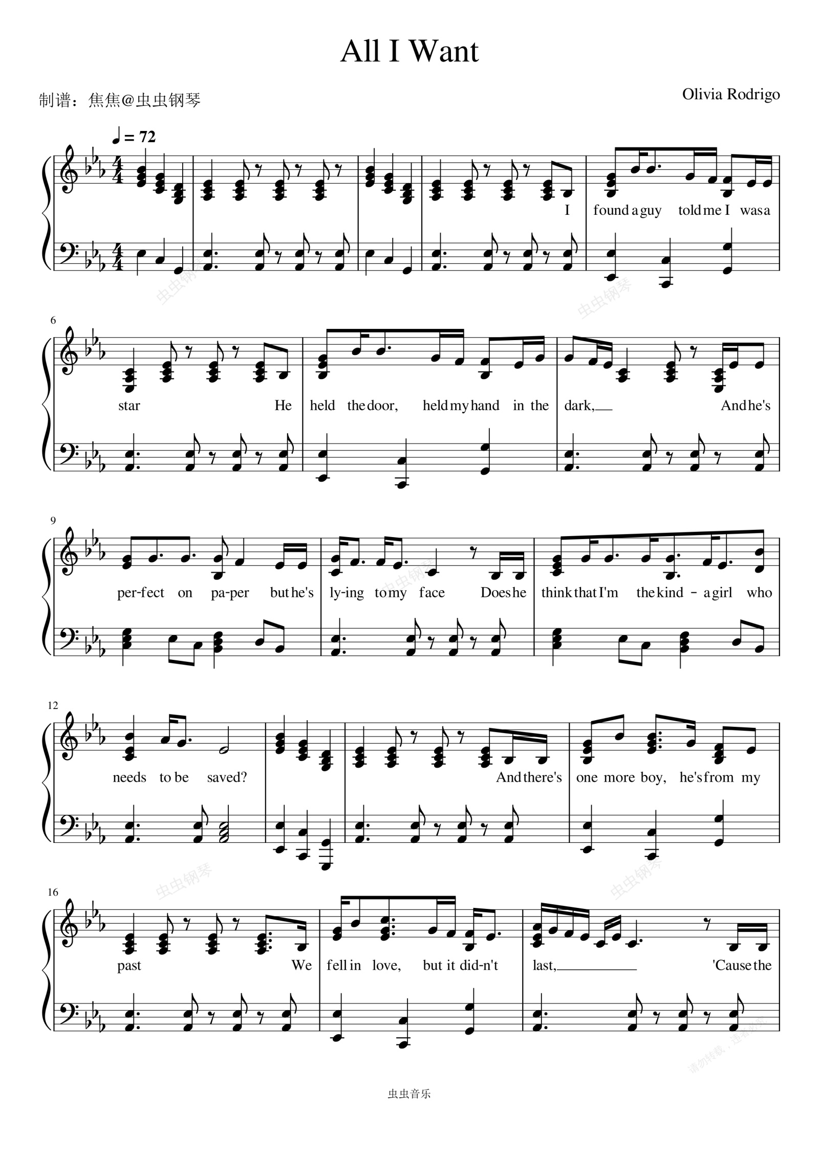 钢琴谱:All I Want (From "High School Musical: The Musical: The Series") - Olivia Rodrigo