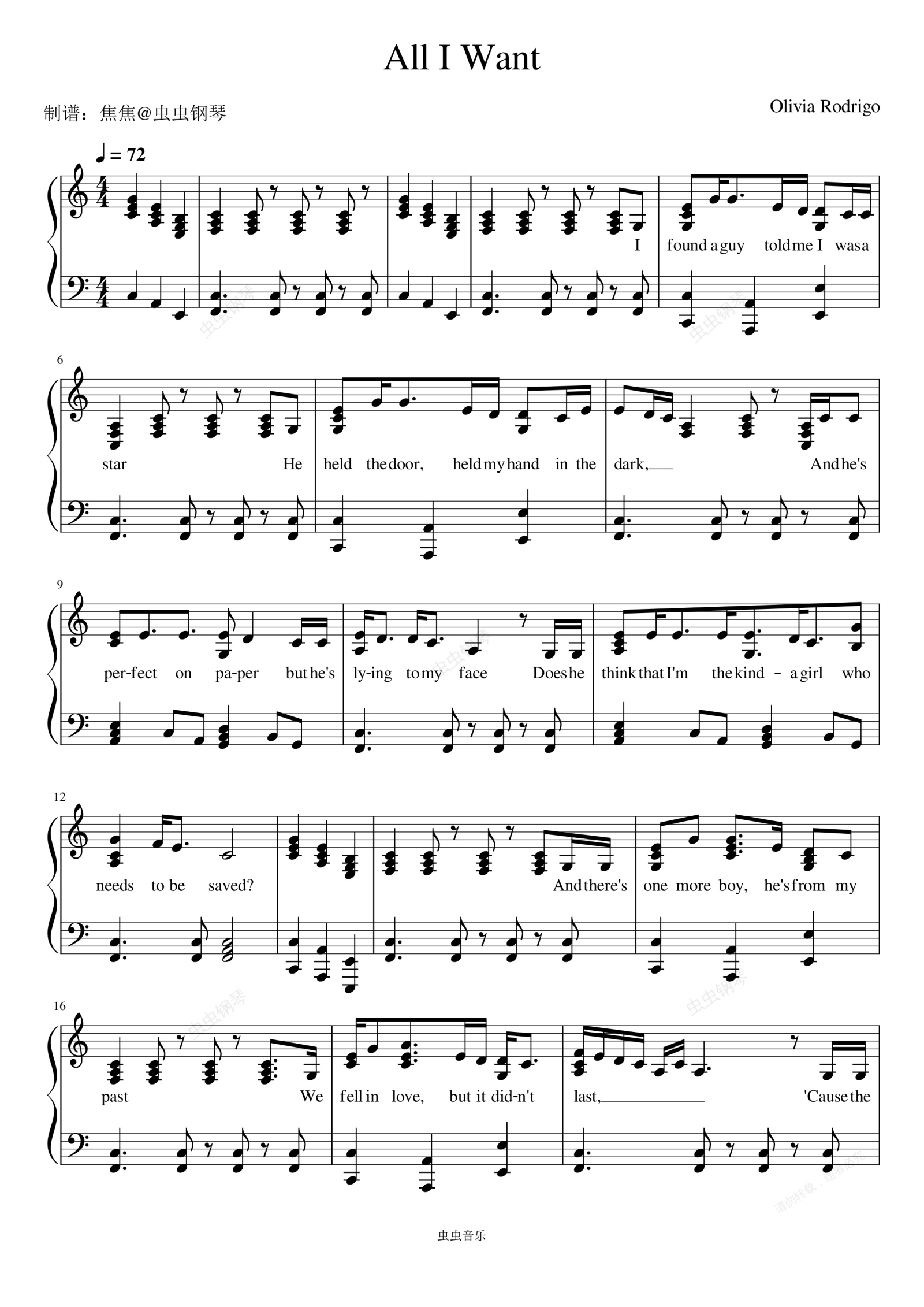钢琴谱:All I Want (From "High School Musical: The Musical: The Series") - Olivia Rodrigo