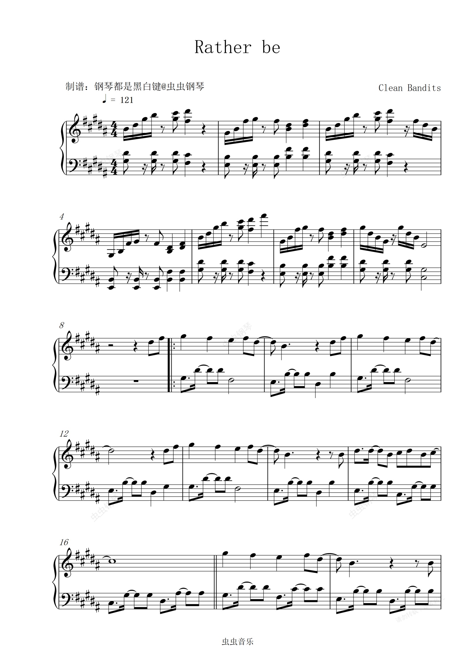 钢琴谱:Rather Be丨“【超燃钢琴】你一定听过的Bgm