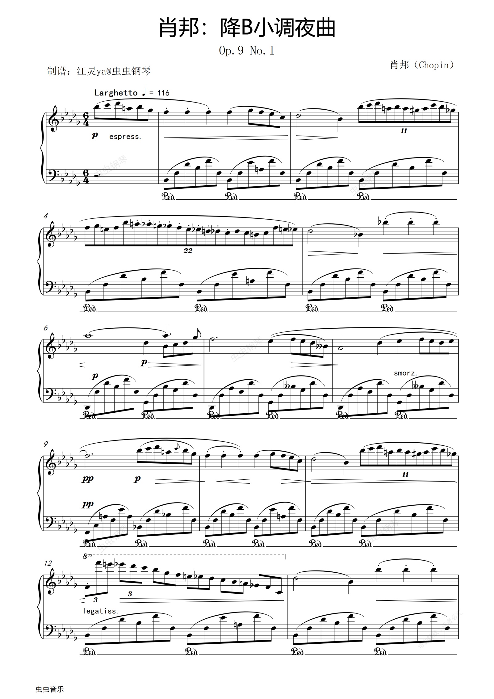 钢琴谱:肖邦:降B小调夜曲Op.9 No.1