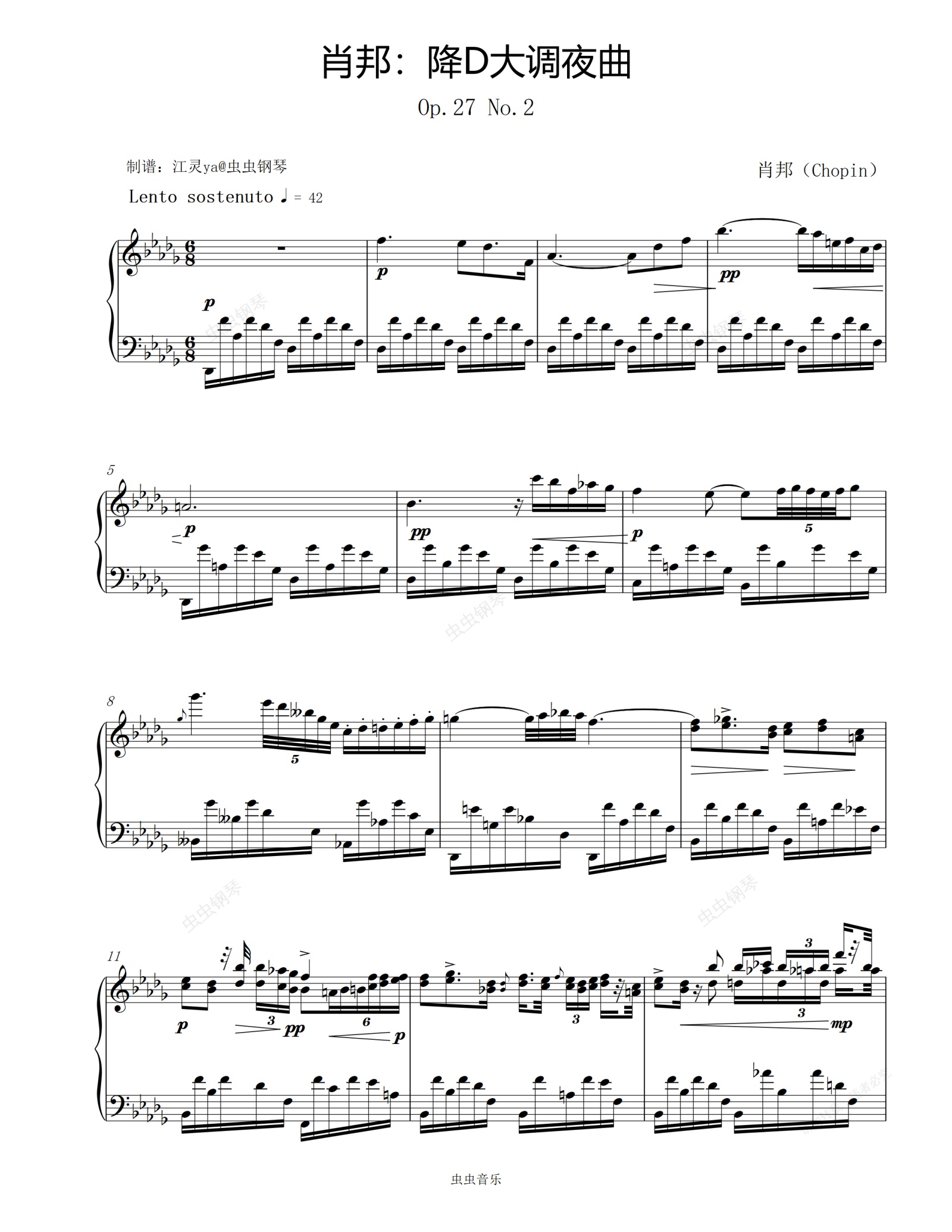 钢琴谱:肖邦:降D大调夜曲Op.27 No.2