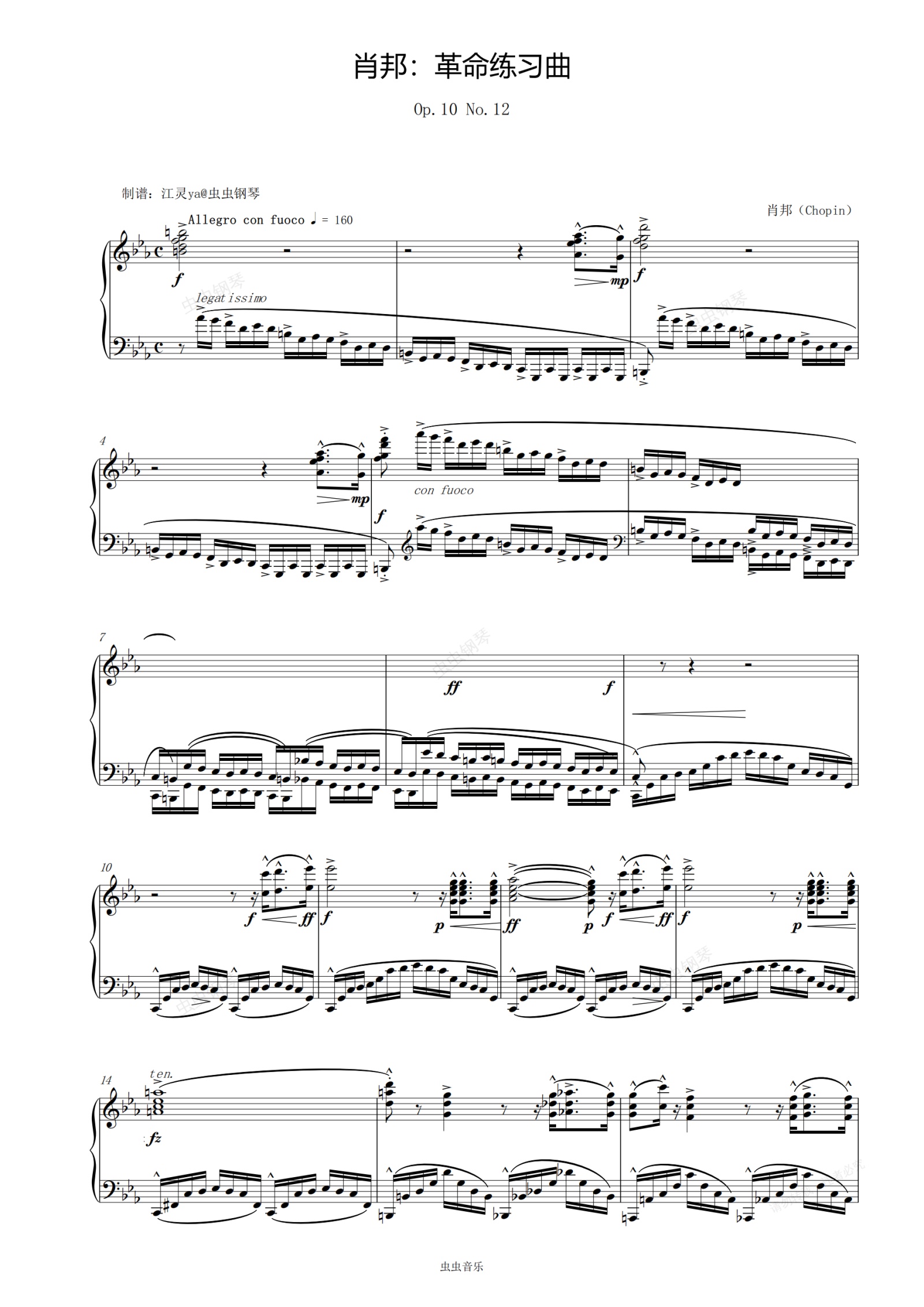 钢琴谱:肖邦:革命练习曲Op.10 No.12