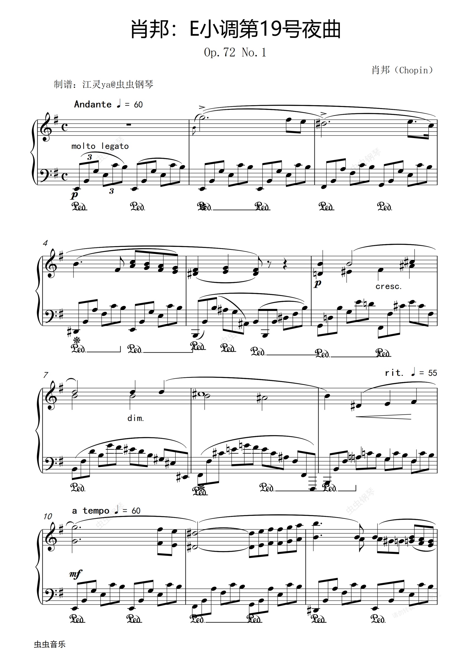 钢琴谱:肖邦:E小调第19号夜曲Op.72 No.1