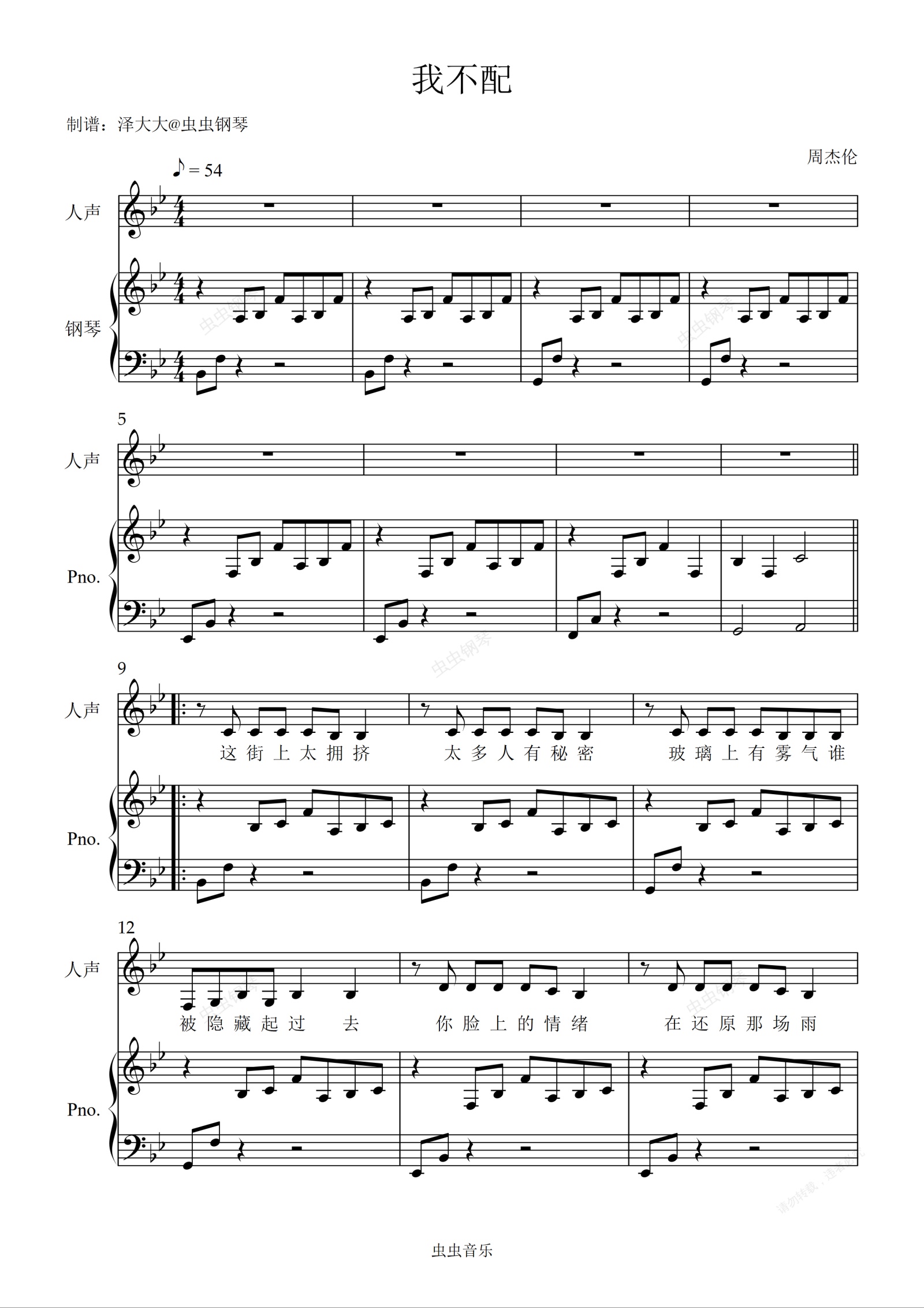 钢琴谱:我不配【原版精编弹唱附词】泽大大 周杰伦