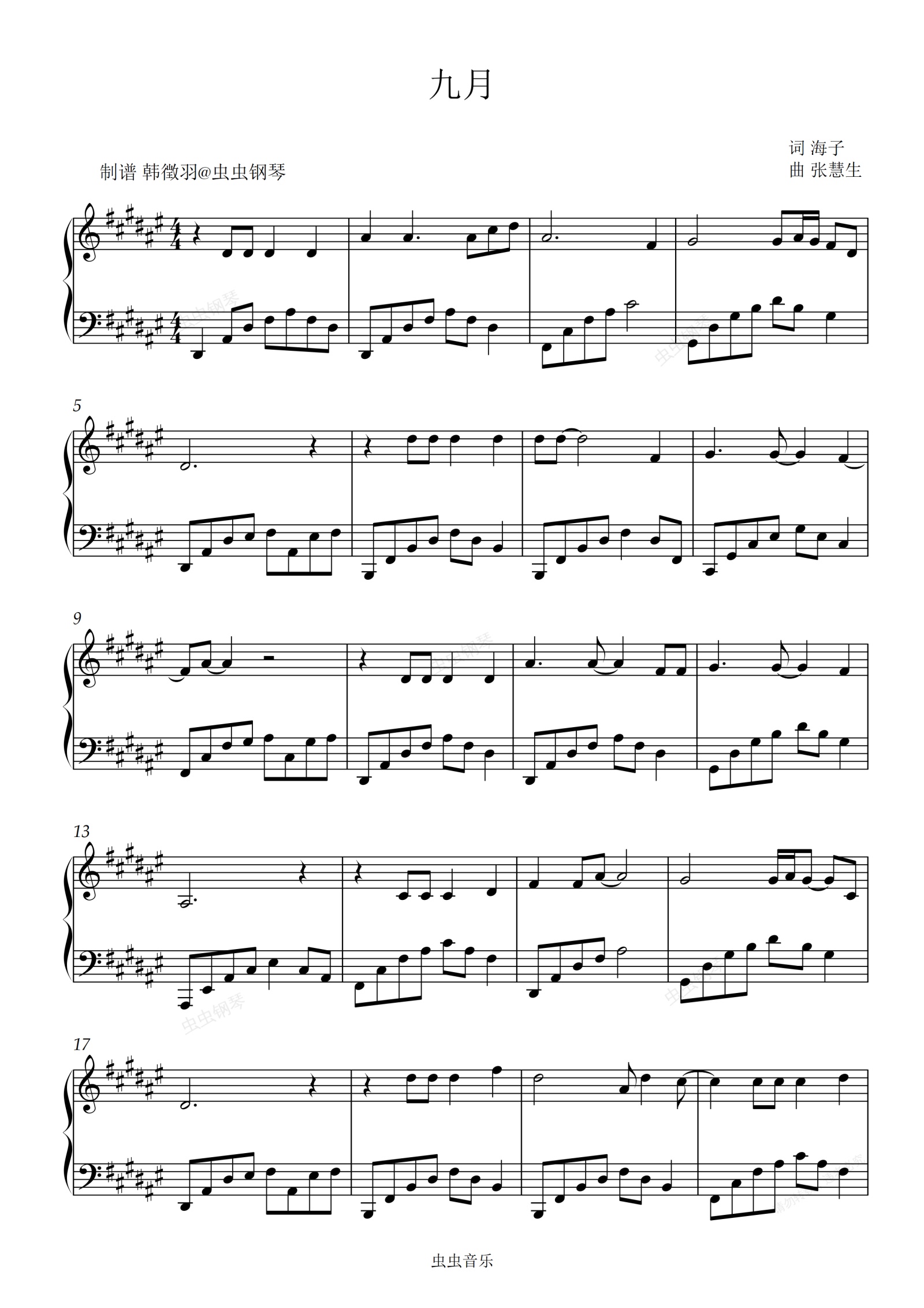 钢琴谱:九月 周云蓬 原调升F