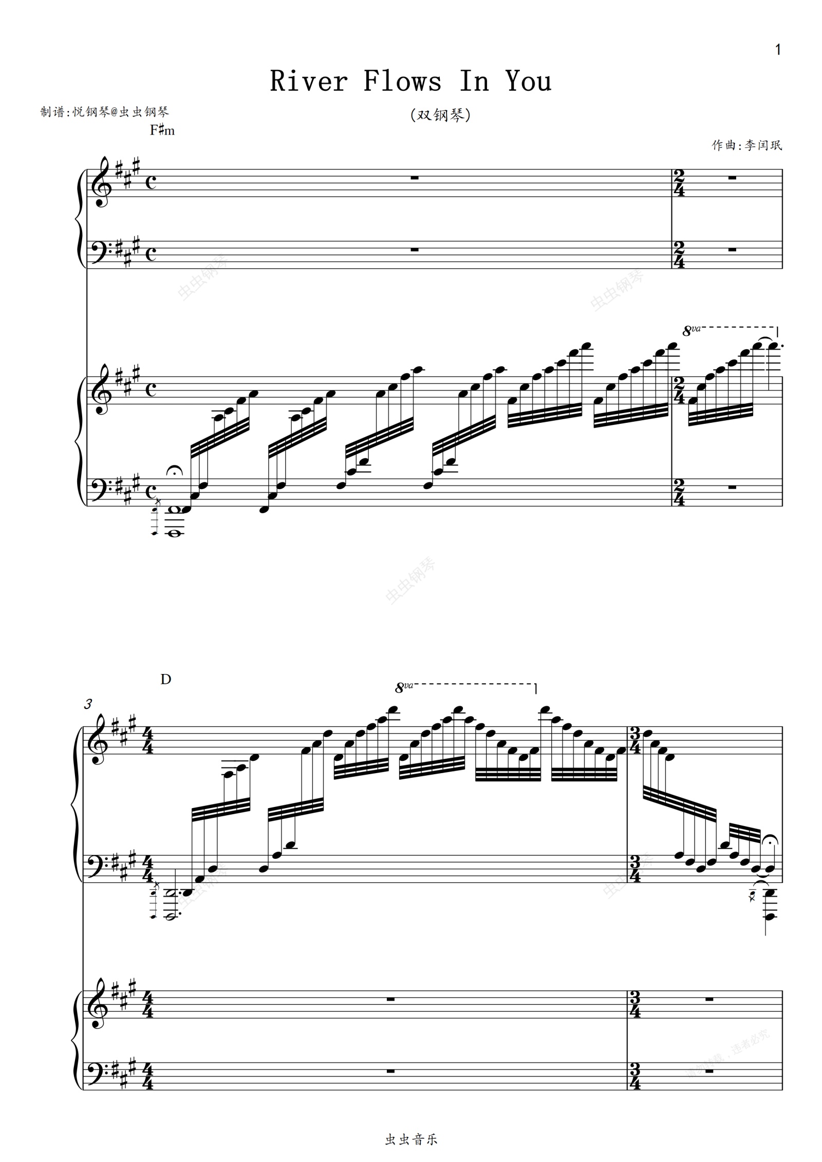 钢琴谱:river flows in you 双钢琴版 李闰珉