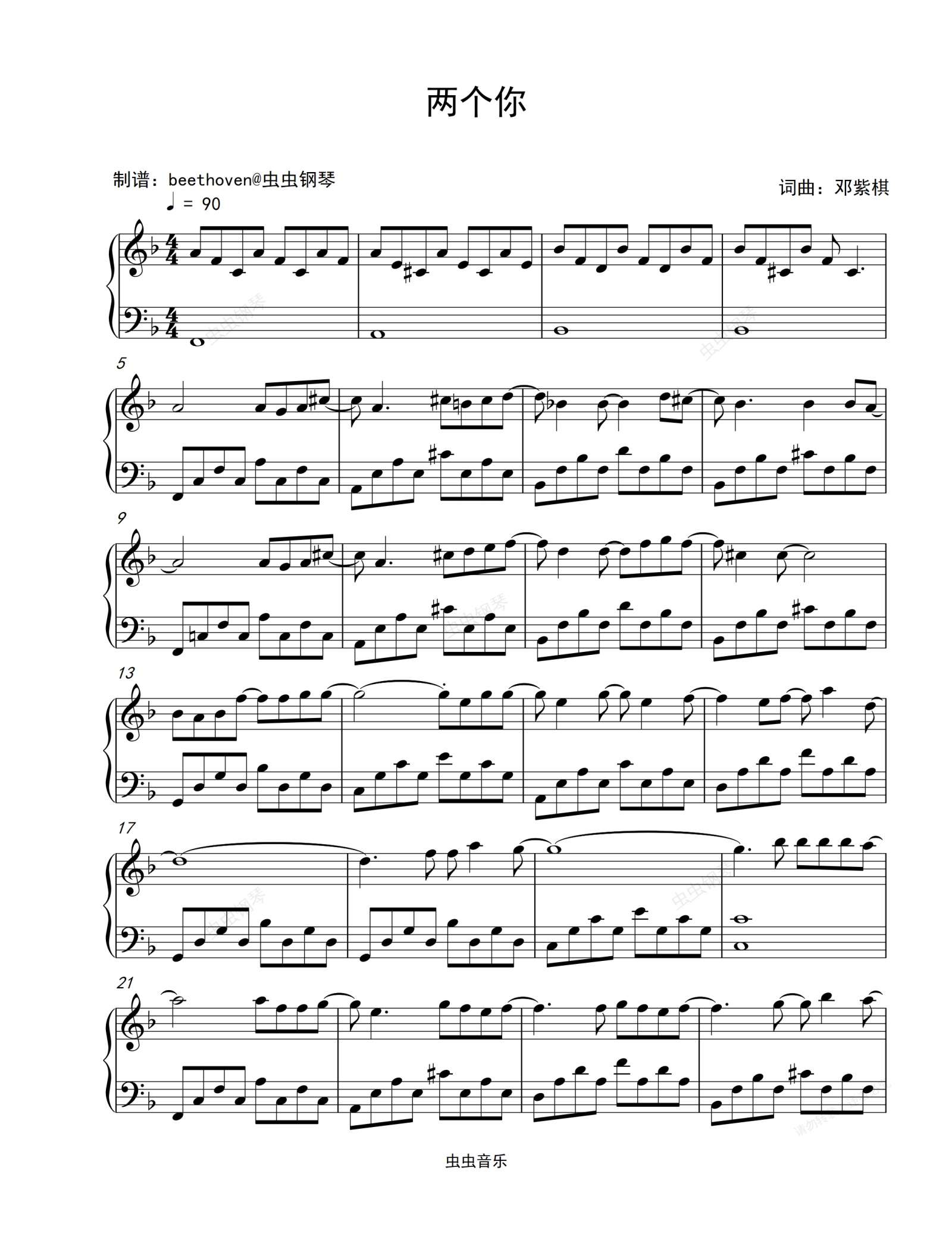 钢琴谱:两个你-邓紫棋-原调简单版-飞虎之壮志英雄主题曲