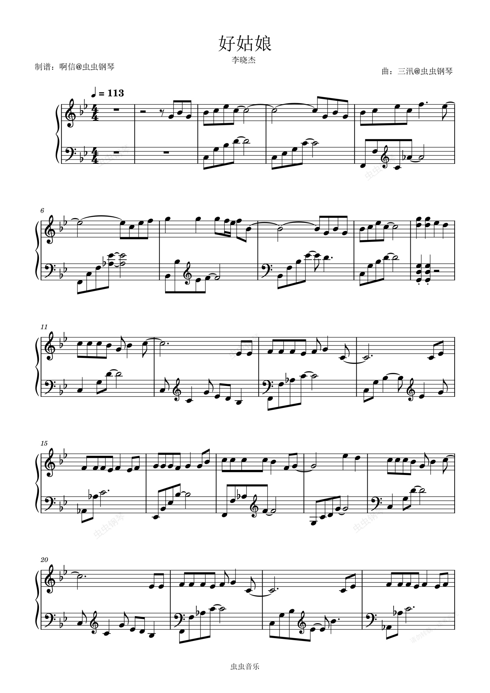 钢琴谱:好姑娘-李晓杰-原版啊信编配