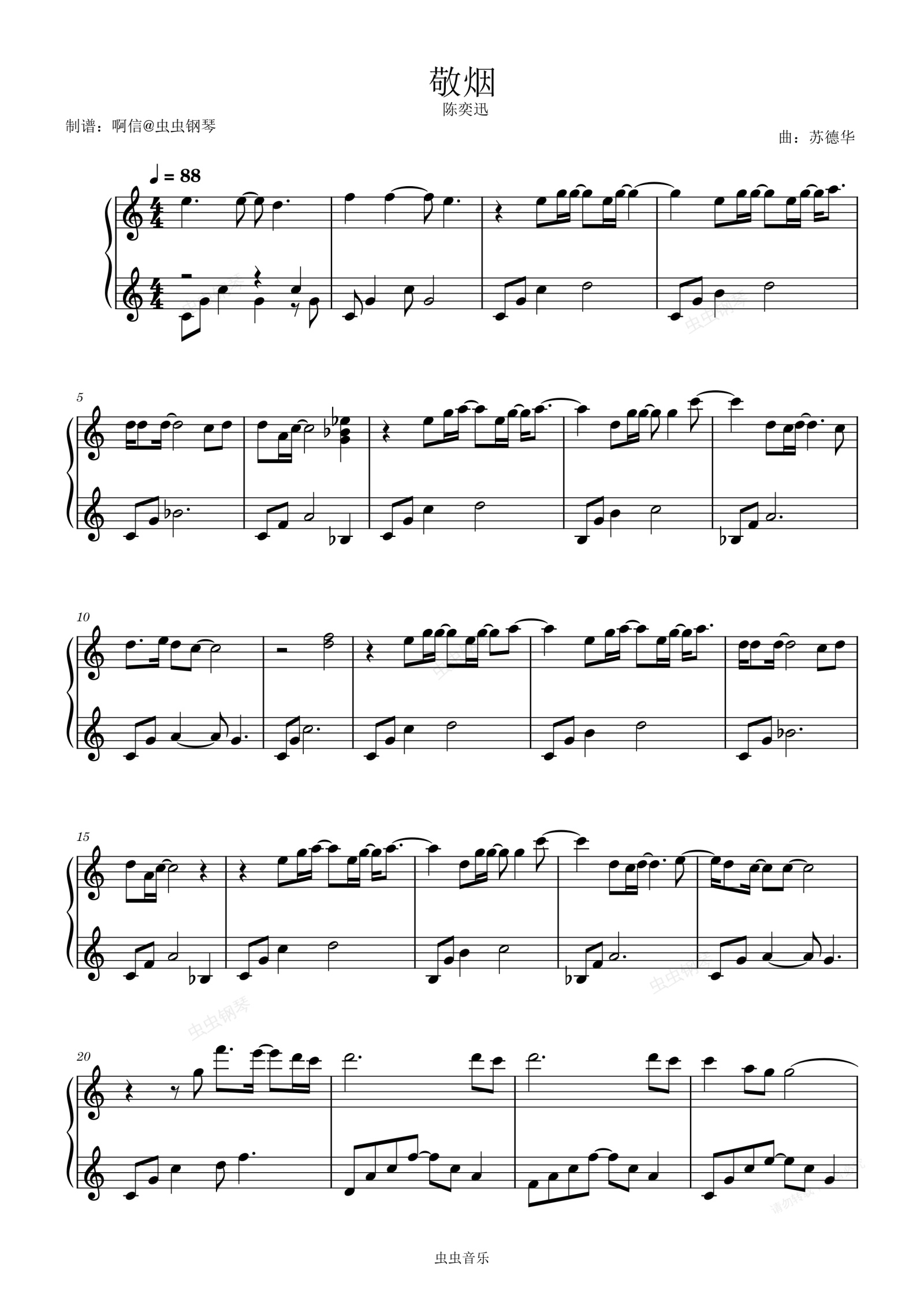 钢琴谱:敬烟-陈奕迅-C调啊信编配