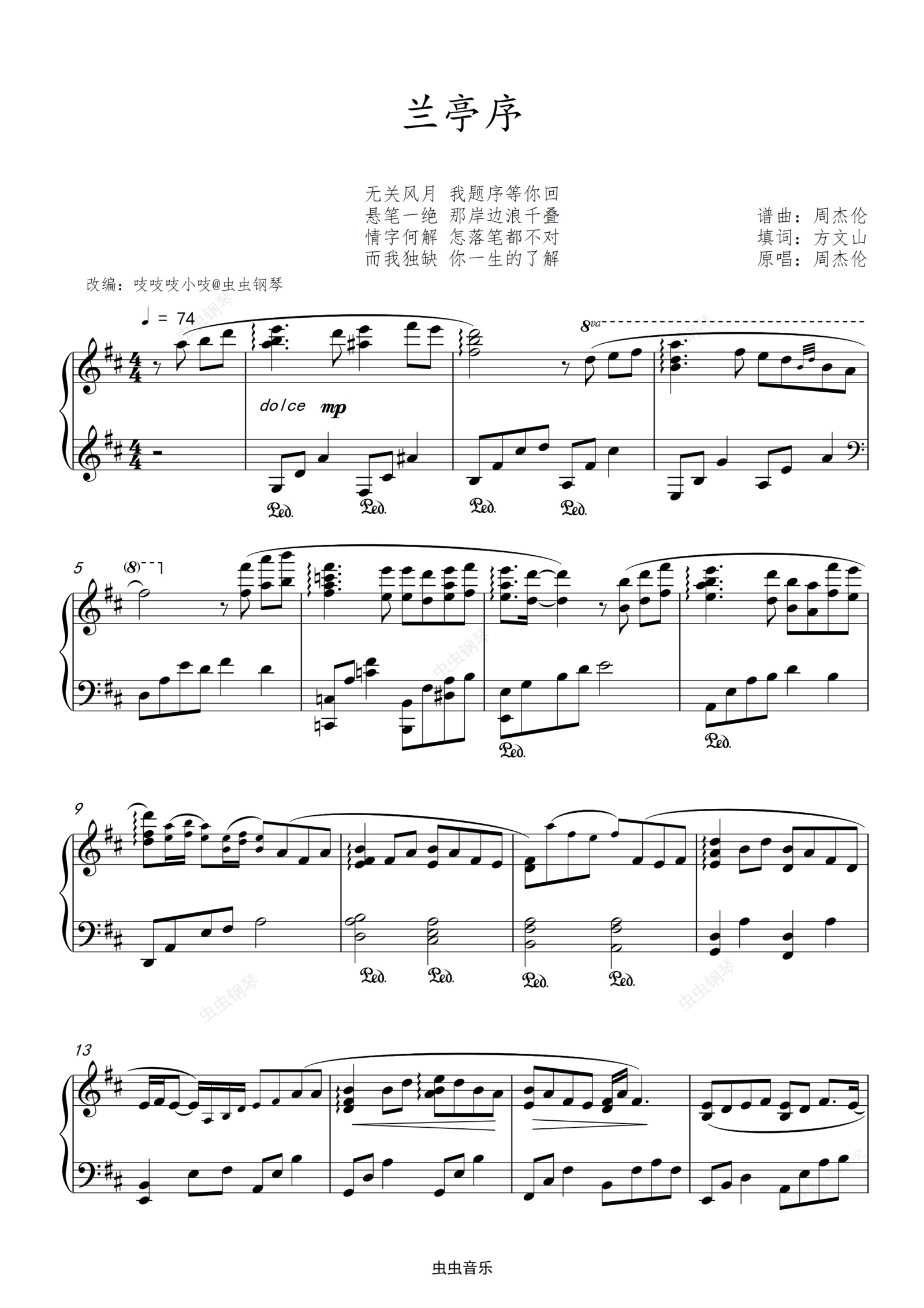 钢琴谱:兰亭序-D-周杰伦 【中级难度】原调  吱吱编配