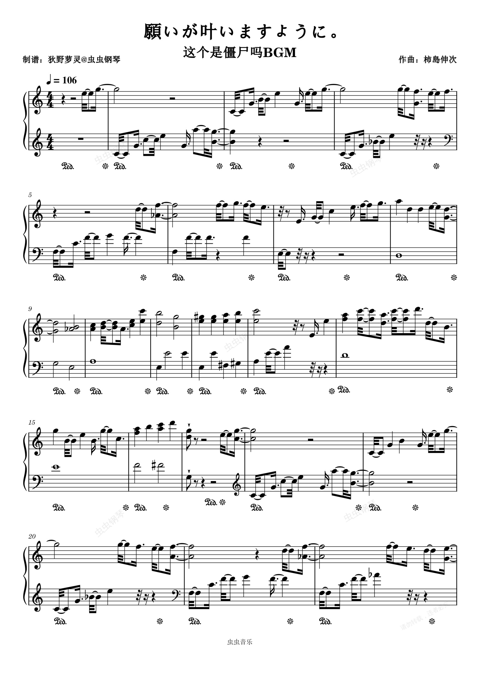 钢琴谱:願いが叶いますように。