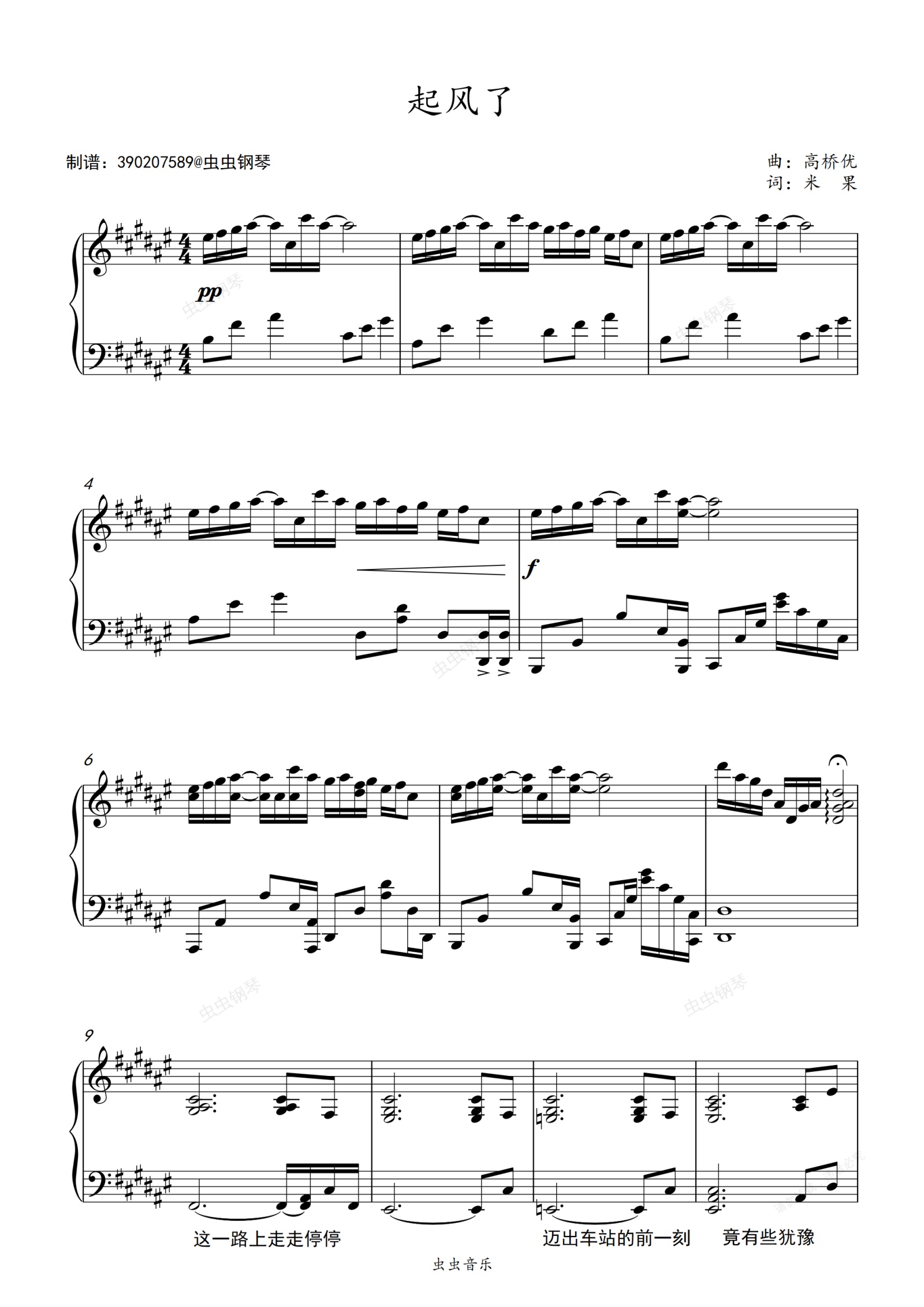钢琴谱:起风了 买辣椒也用券 弹唱谱