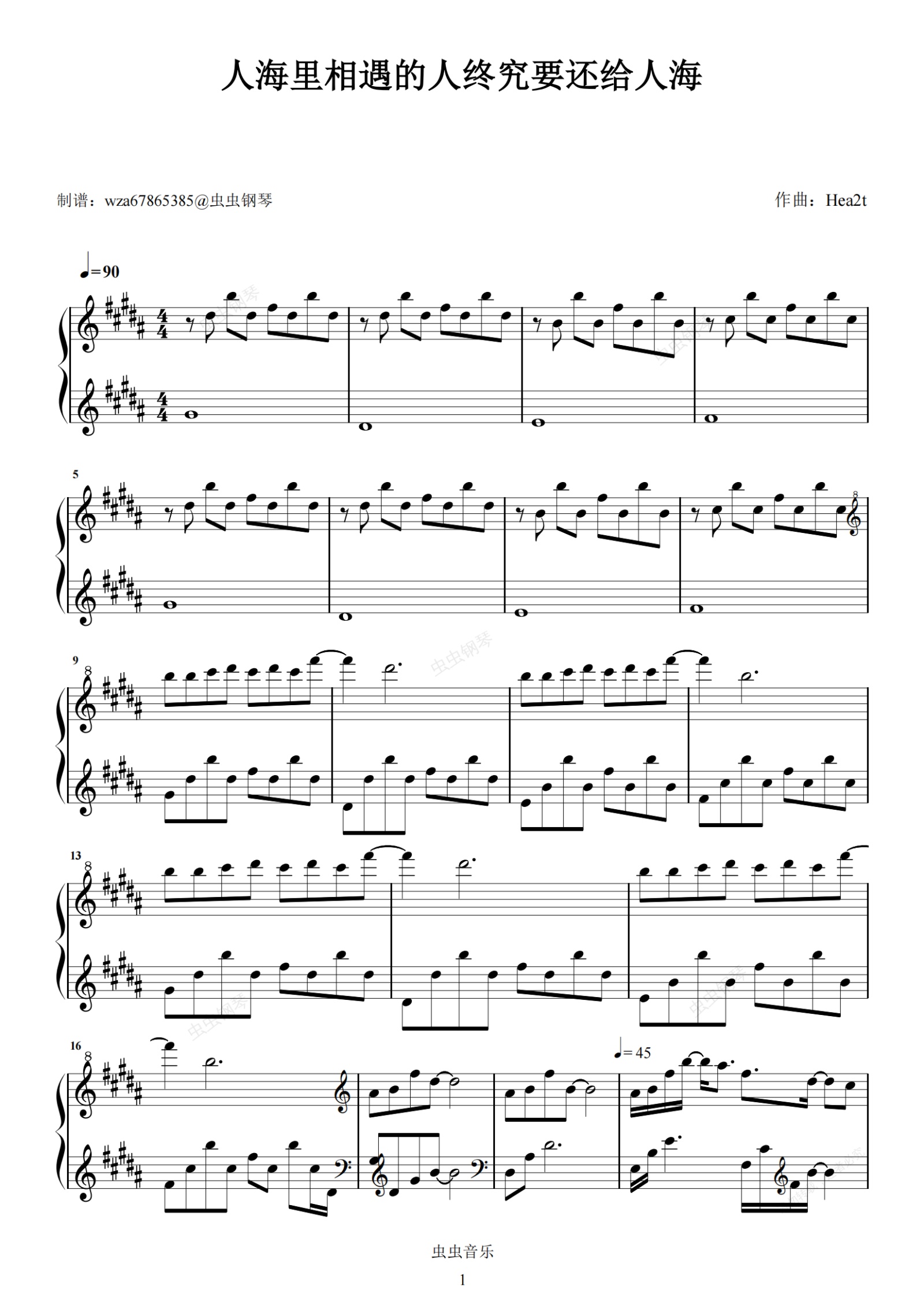 钢琴谱:人海里相遇的人终究要还给人海