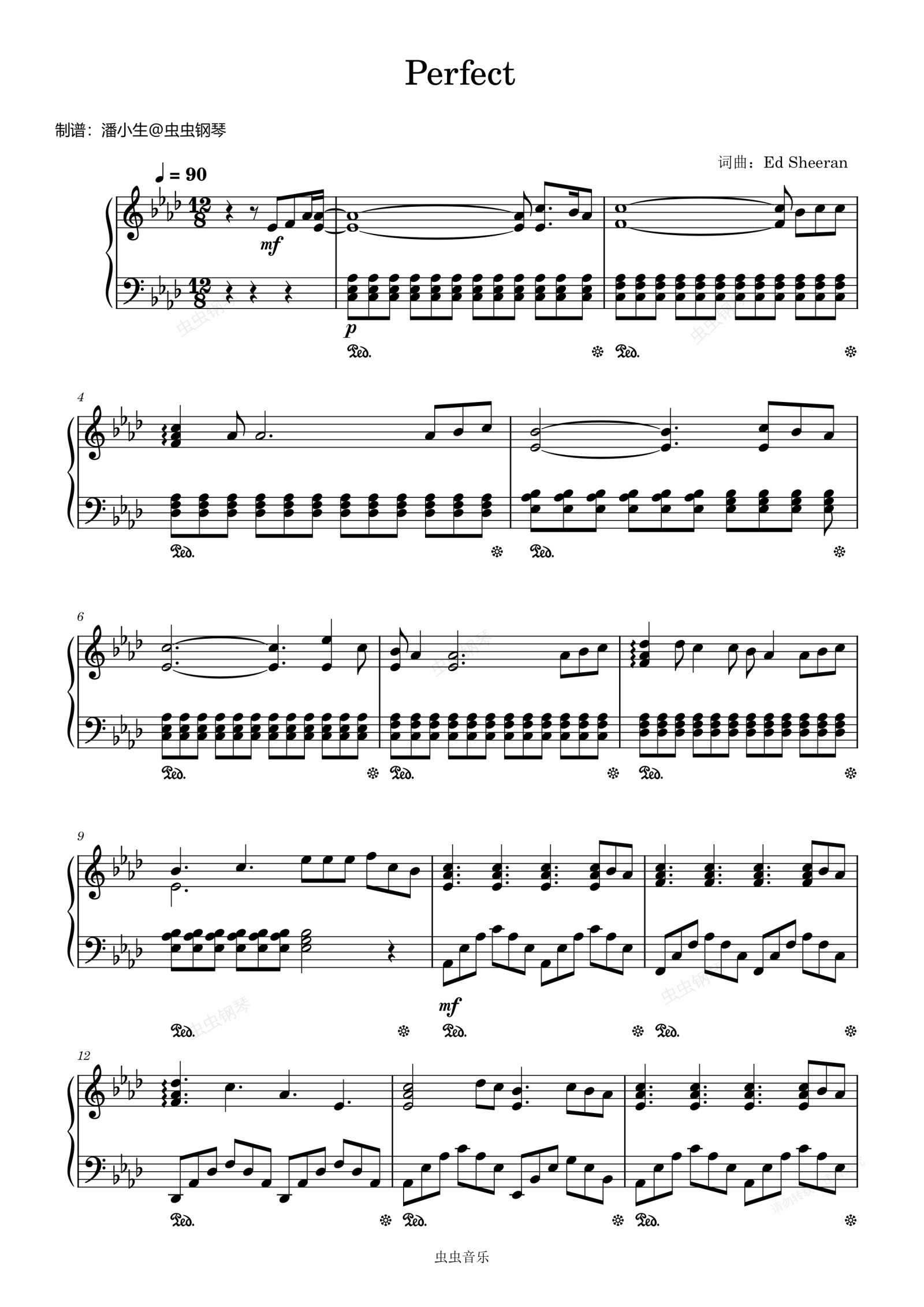 钢琴谱:Perfect,原调降A大调独奏谱,Ed Sheeran,黄老板,完美无暇
