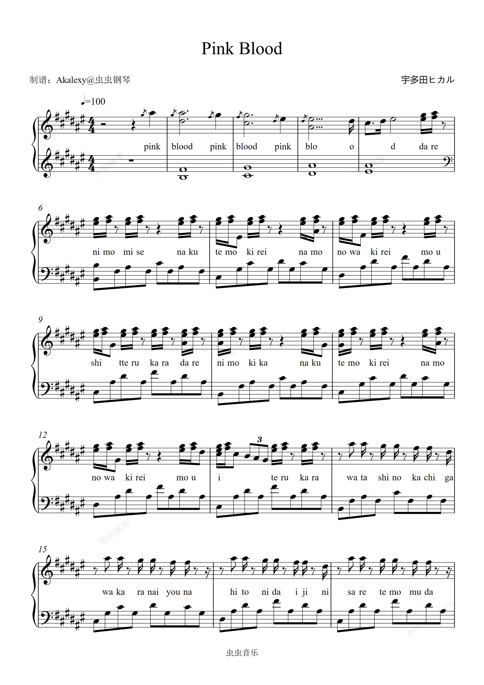 钢琴谱:【致不灭的你】Pink Blood(日语弹唱版)