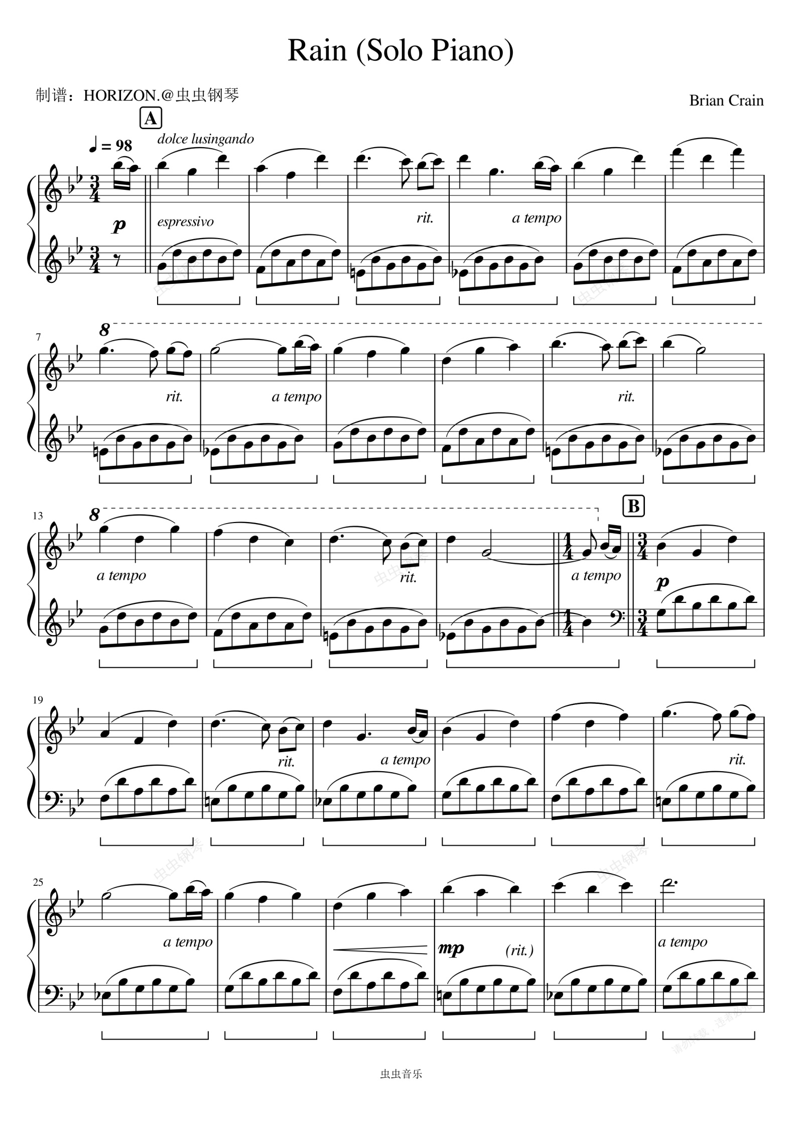 钢琴谱:Brain Crain - Rain(单钢琴完整版)